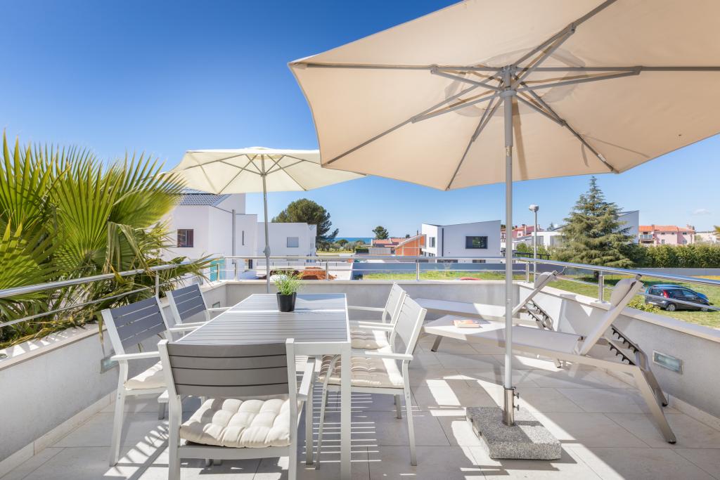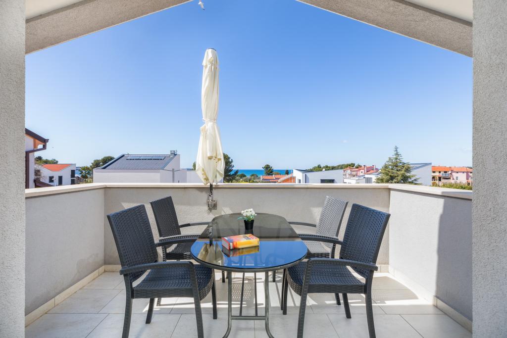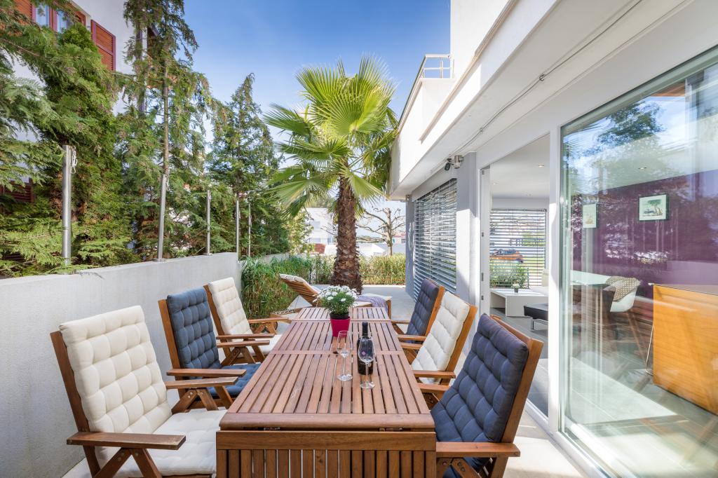 Modern house with 5 apartments, overlooking the sea, 200 m from the beach. Each apartment has a parking space in front of the house. Near the building there is a complete program that is necessary for a pleasant vacation. (shopping, beach, doctor, restaurants, bar, old town, etc.) All this is within a few minutes' walk.