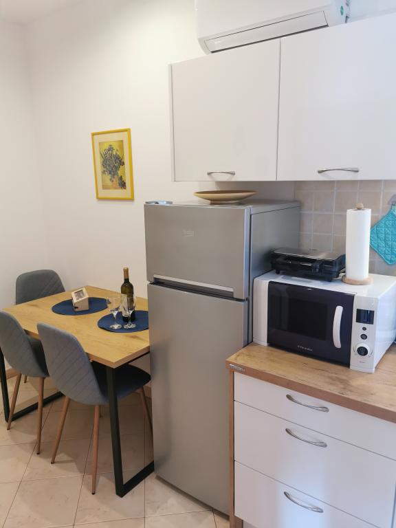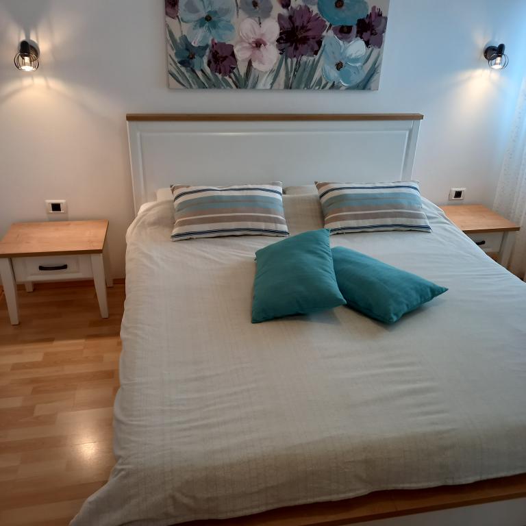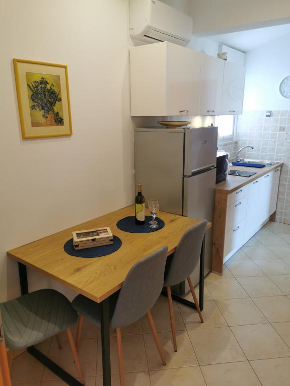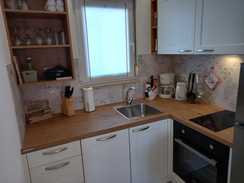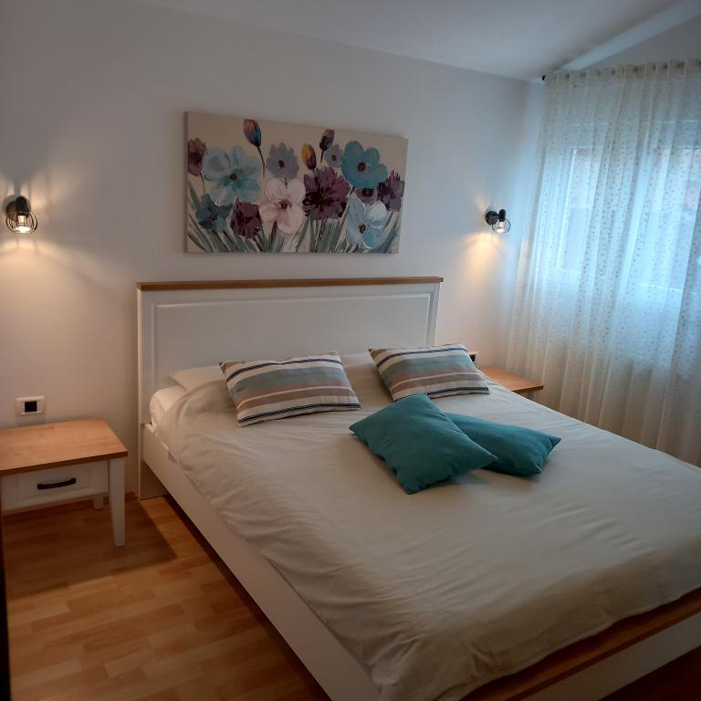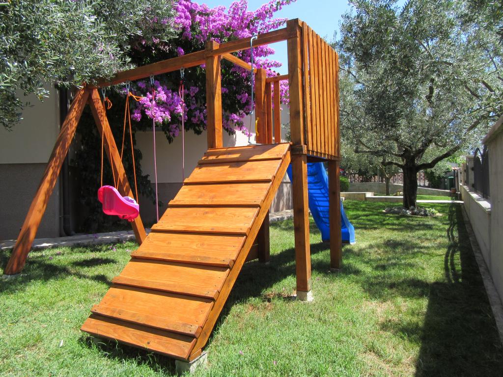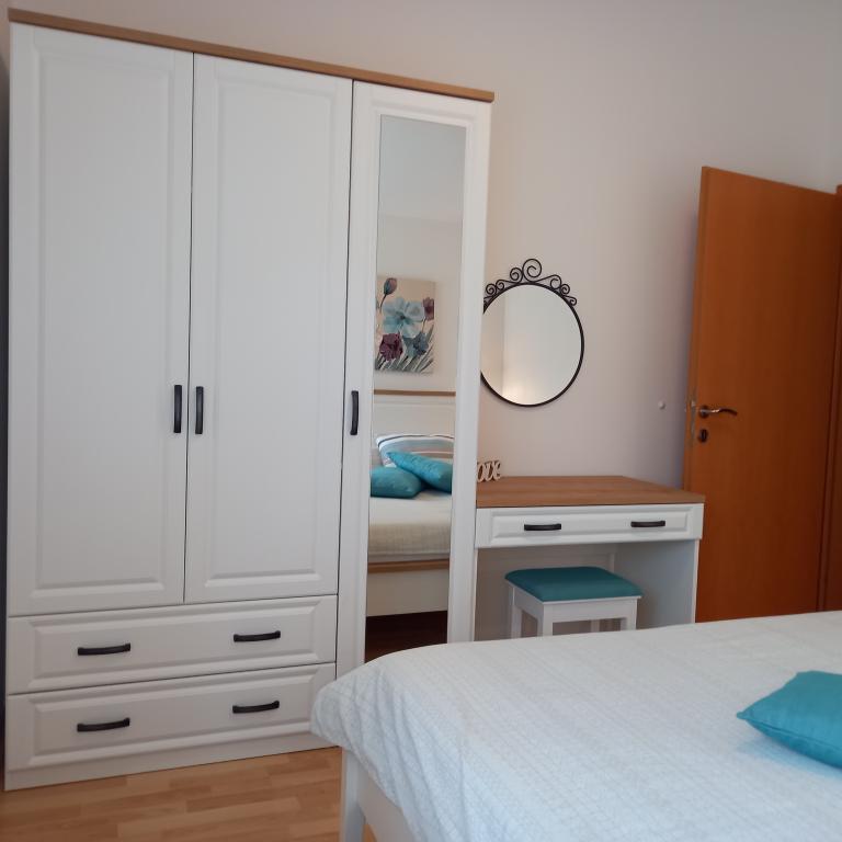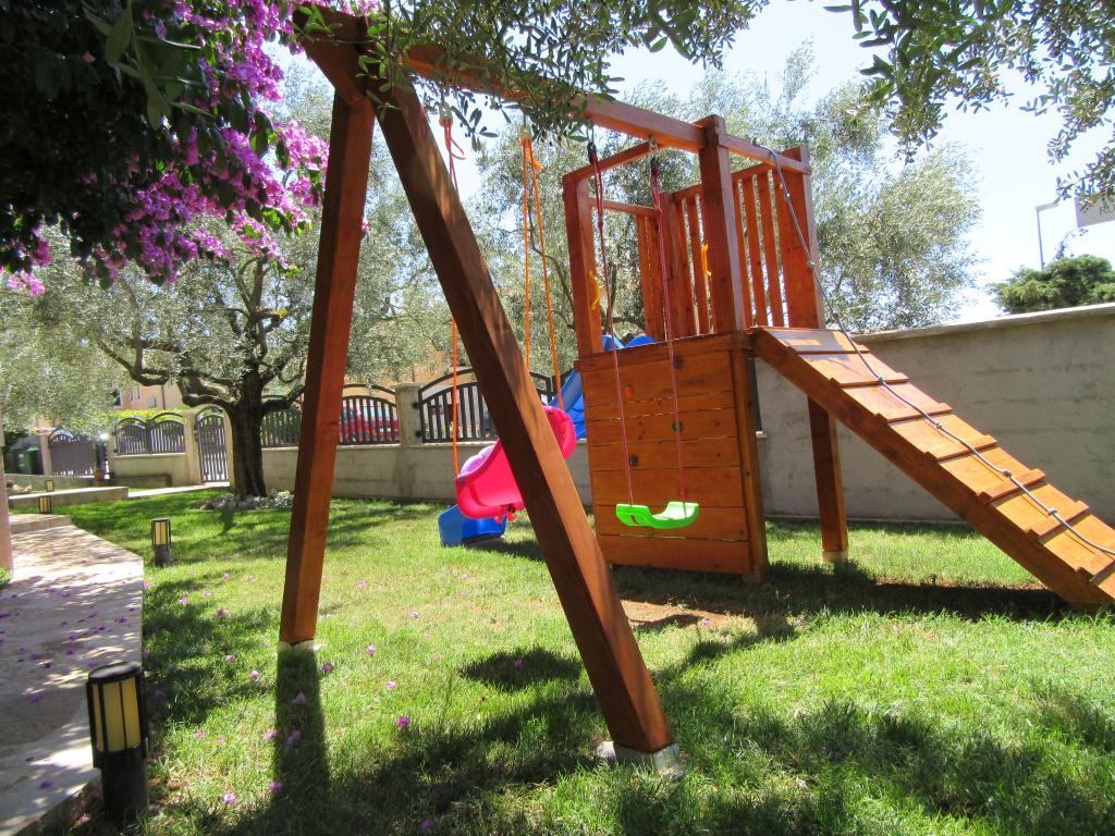 We spent a wonderful 12 days here with 2 children. A playground and a garden (very well-kept) at the house is an added advantage. The apartment is equipped with everything you need (there is also a washing machine and that's a big plus :D), it's spacious, clean and it's great to relax here. Behind the house you can use the grill. The owners are helpful and nice. You can walk to the beach behind the campsite, but it was not our dream (no shade). We preferred to buy a long-term ticket for city parking lots and drive to the center to the beach where there is a playground and a restaurant. I recommend the Irena apartment with all my heart. Thank you.