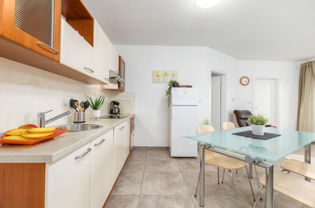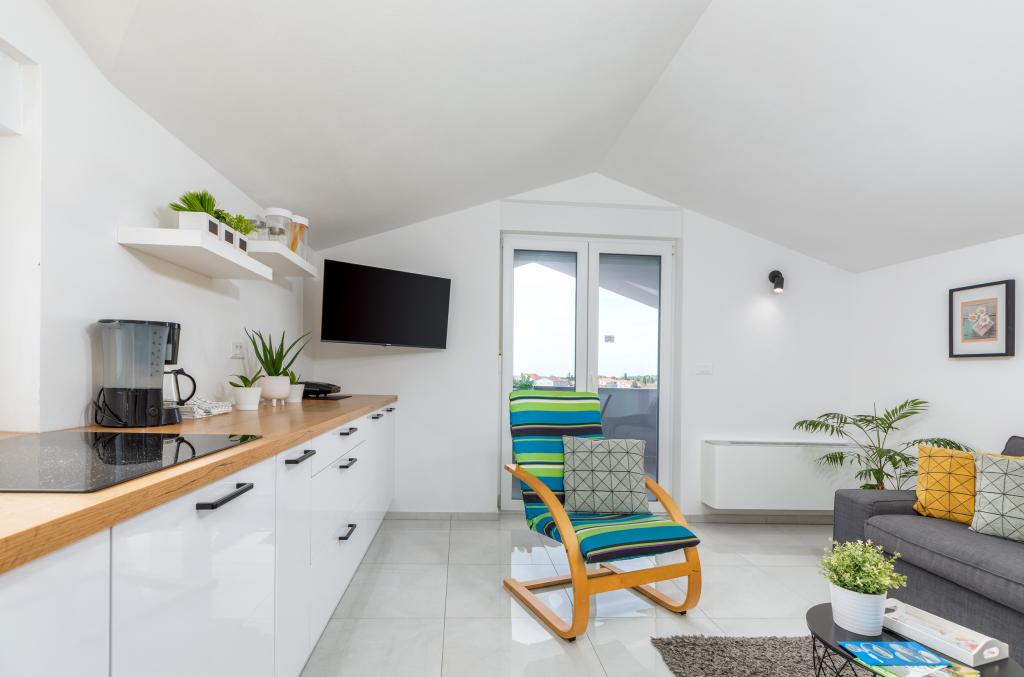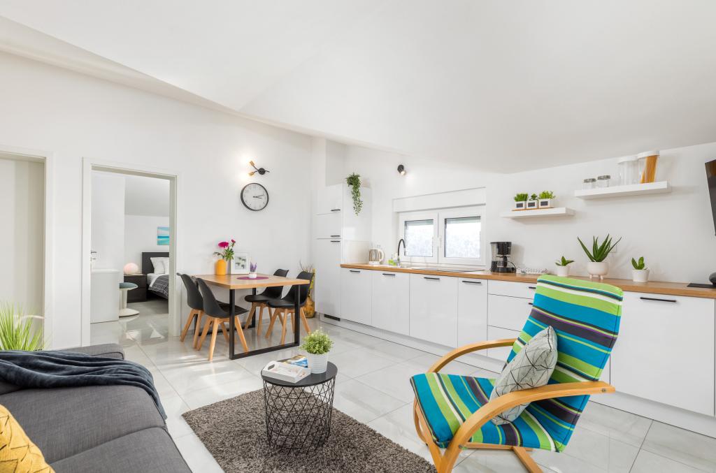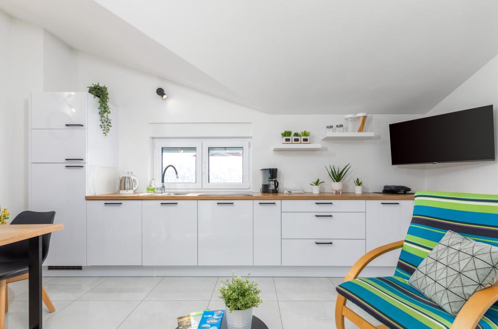 It was our first vacation in Croatia. We rate the accommodation at a very high level. The apartment is new, spacious, neat, clean and well equipped. Overlooking the sea and a beautiful sunset. The owners are very friendly and hospitable. The apartment is located in a quiet and peaceful area. The best recommendation is that we have already booked our next vacation in the same apartment.