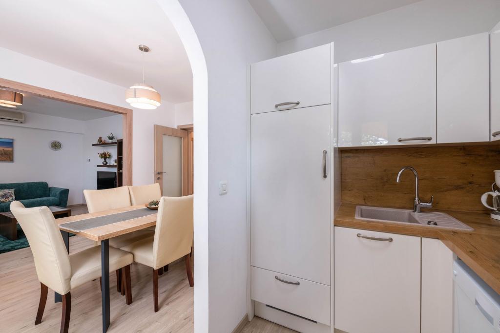 Very nice owner, clean apartment. We were satisfied and will like to resist. Apartment is big enough for 6 people and a large terrace. Place is small and relatively Ruig. Beach with small stones. Beautiful holiday! Andreas.