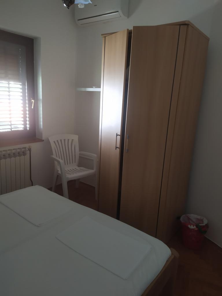 Fazana is a small fishing and tourist town in Istria and is the departure port for Brijuni National Park. In Fazana, in addition to numerous accommodation units, there is another small, quiet and tidy family house, 80m from the sea, which offers two rooms. The accommodation is located in a quiet street and is close to the center of Fazana and the beach. Everything you need is within reach, so you can walk everywhere. A maximum of 4 people are accepted, so peace and rest are guaranteed. Animals are not allowed. Through the common entrance you go to the first floor where the rooms are. Each room has its own bathroom (located outside the room). One has a large terrace and a view of the sea, while the other room does not have a terrace and overlooks the courtyard. The rooms share a common refrigerator and an outdoor kitchen that can be used as an additional terrace.