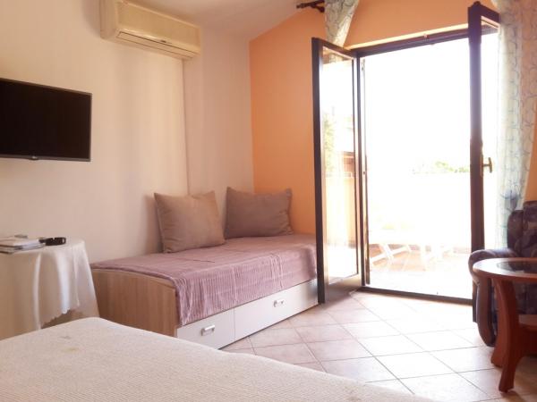 Fully equipped apartments located in Funtana, 300 meters from the new pebble beach and 100 meters from the nearest restaurant and shop. All apartments have a terrace, one or two bedrooms, one to two bathrooms, living room with dining room, air conditioning, free WiFi and parking on site. The yard is decorated with a large fenced garden with a rose garden, a barbecue area and two covered verandas. Welcome!