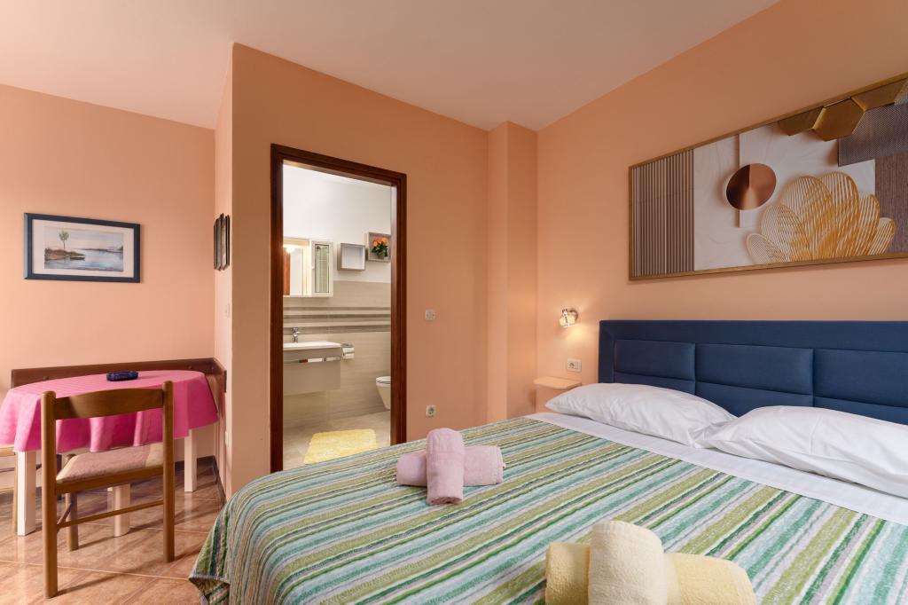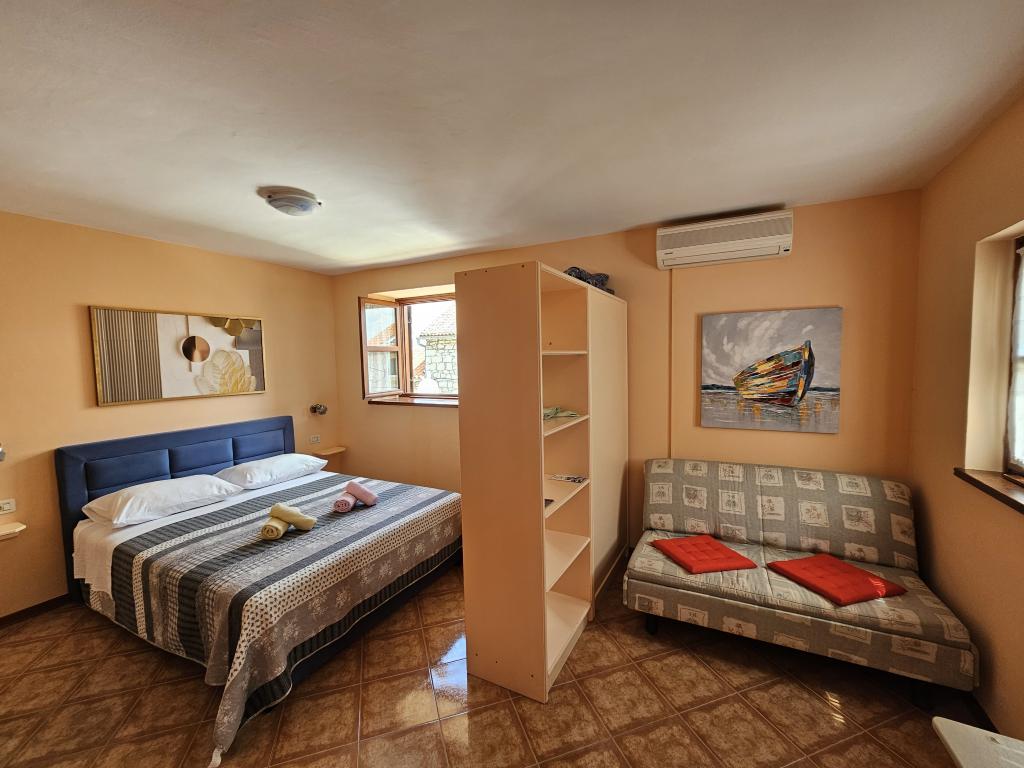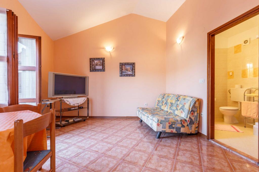 In the center of the old town of Funtana, a stone house has been renovated with small family apartments. All apartments have mini kitchens with the necessary inventory (dishes, coffee machine ... =, bathroom with toilet (towels ...), bedroom (all necessary bedding), living room (sofa that can be converted into a third bed, TV SAT, WIFI, air conditioning) and a terrace.Post office, mini market, restaurants and other tourist facilities are only 100m away.The beach with all the necessary facilities is away from the APP 300m.