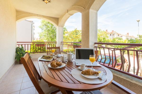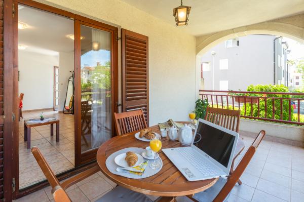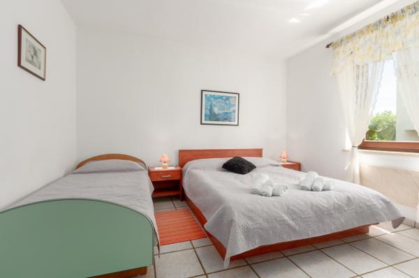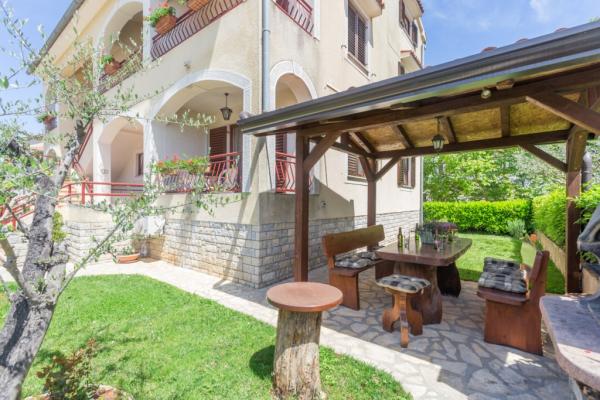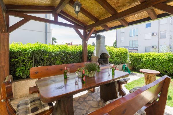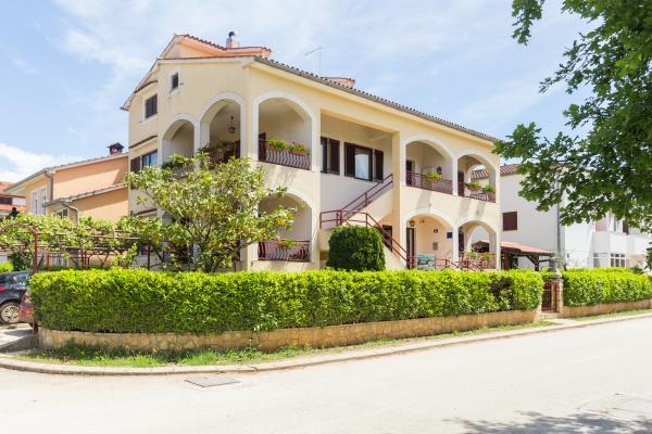 The house is located in a quiet, residential part of Funtana. Two apartments are located on the ground floor of the family house and have a beautifully landscaped yard with a barbecue and a covered veranda with wooden garden furniture where guests can spend their time when they are not on the beach. The apartments are modernly furnished and consist of one bedroom with a double bed and an additional single bed, a living room with a sofa bed for one to two additional people, a fully equipped kitchen with a microwave oven, fridge, stove, coffee machine and kettle. , bathrooms with shower and washing machine and covered terraces with garden furniture. Bed linen is changed weekly, towels every three days or according to guests' wishes. Air conditioning and WI-FI as well as a covered parking space are included in the price.