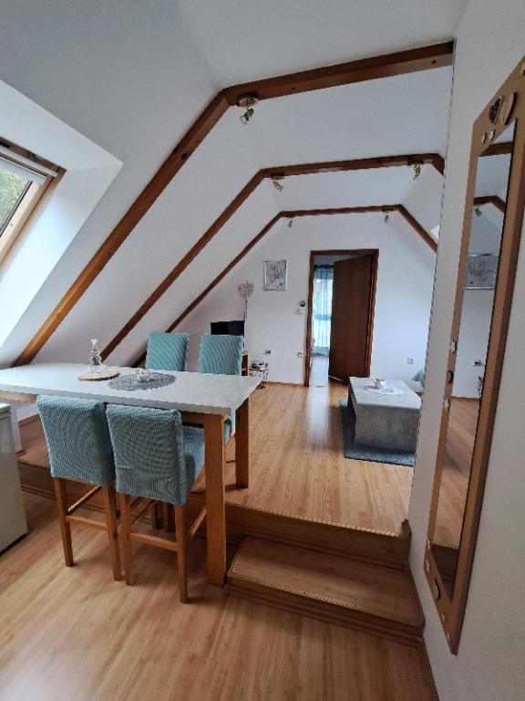 Apartments Erika are located 900 m from the center of Fužine. They are located in a family house with a separate entrance for guests. We have two apartments and they are categorized with *** and **** stars and a double room with a separate bathroom categorized with *** stars. Our accommodation is labeled Kvarner family quality and under the brands Hike friendly, Bike friendly. We have storage for eight bikes. The guests of the apartment have at their disposal our garden, which is beautifully decorated and has a lot of greenery. We have a garden grill, a children's playground, which consists of a slide, see-saw, swing, and a badminton court. Guests can enjoy the barbecue, shade and fresh mountain air in peace. The apartments have central heating, air conditioning and Wi-Fi connection. Nearby is our adrenaline park (Vara fun and paintball park), which you can visit in the summer months. Come and feel the charms of a small town in Goran and the warmth of home in our apartments, which many