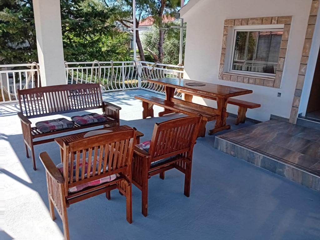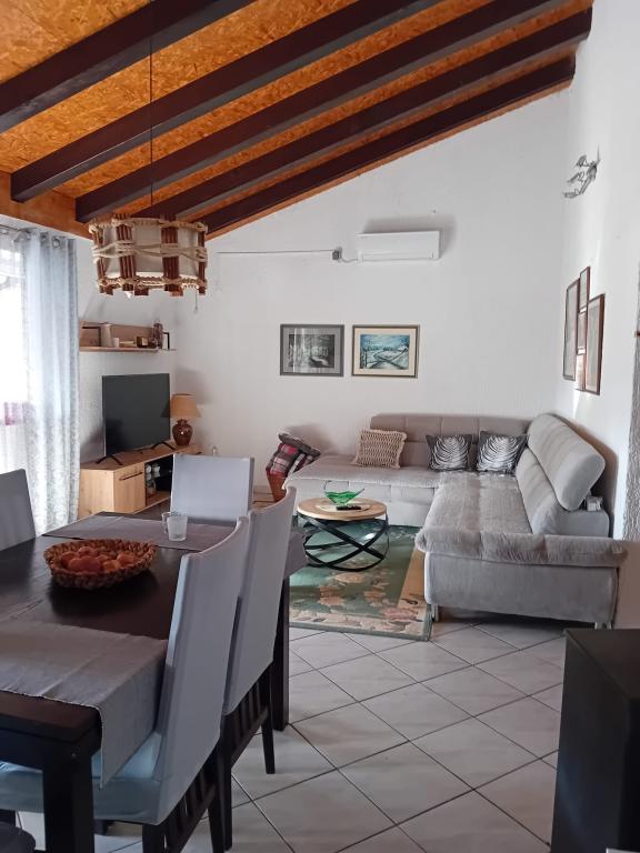 The apartments are located in the ground floor which is the first street to the sea. They are equipped with appliances (fridge, stove, oven. Microwave, dishes and utensils), TV, parking, are not air-conditioned. Each has its own terrace overlooking the countryside. The possibility of using yard barbecues. The apartments are suitable for a small family or couple. Pets are welcome for a small fee. Towels and sheets are changed once a week. 50m from the sea, 200m from the town center, and the first store you immediately across the street. Although located in the main street, hidden terraces and olive trees, pomegranate.