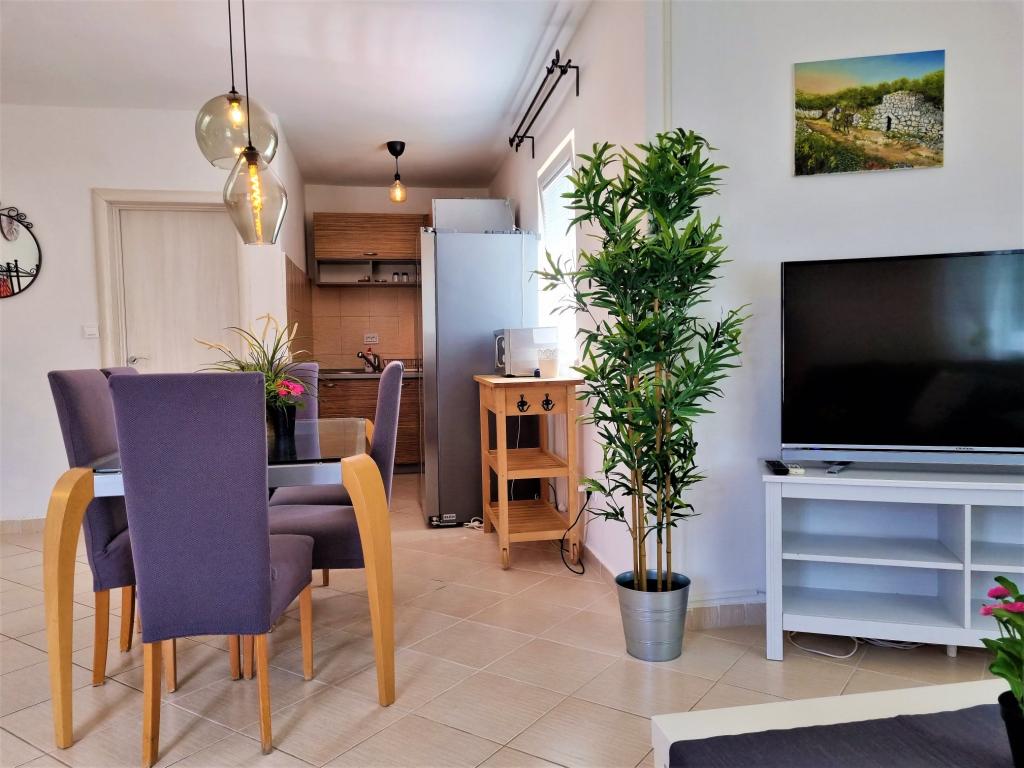The accommodation is excellent. Everything is as in the photos. Very clean and tidy. The landlady is unobtrusive and always ready to help. We were given an extra set of bed linen after we got it dirty. The beach is beautiful in the shade. Suitable for holidays with very small children. The kitchen is equipped with dishes. The apartment really has no flaws.
