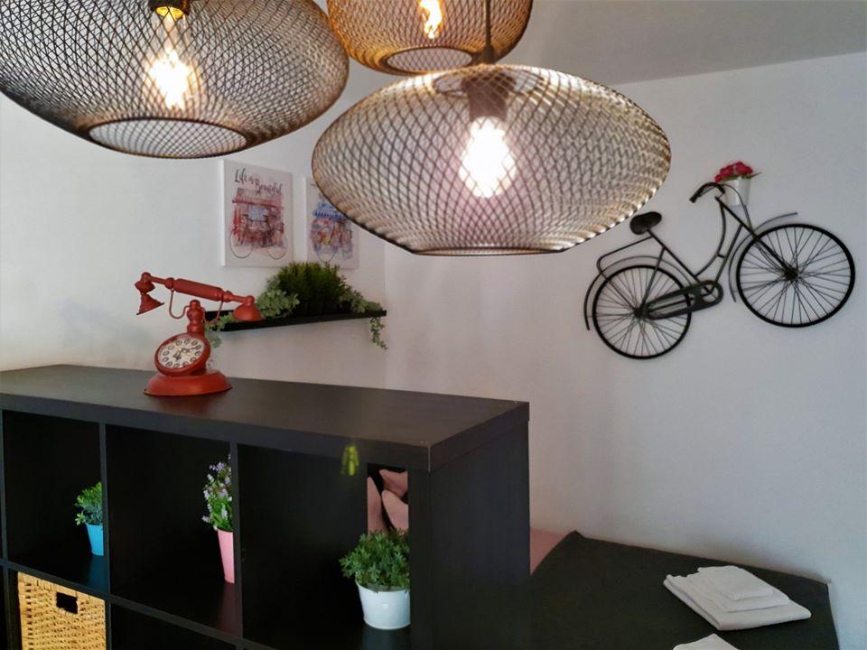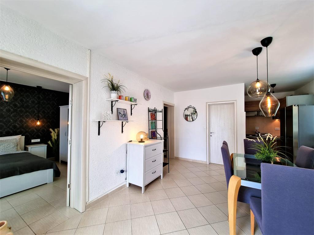We stayed in a studio apartment, very nicely decorated, we had everything we needed. Romantic atmosphere in the evening with lighting in the yard. From the yard to the sea and swimming without limits... The hosts are very nice. It was a nice and peaceful vacation!!