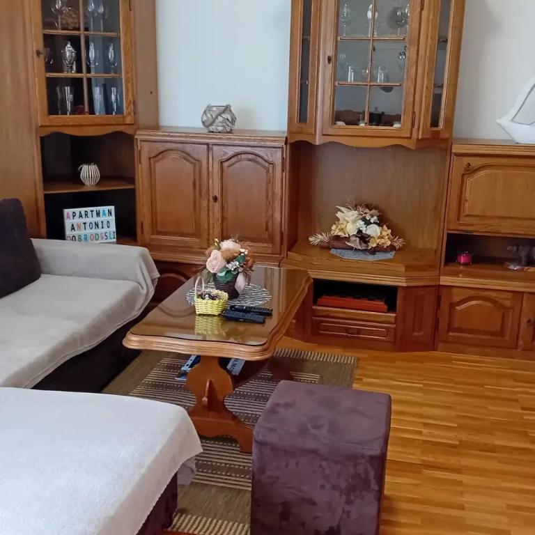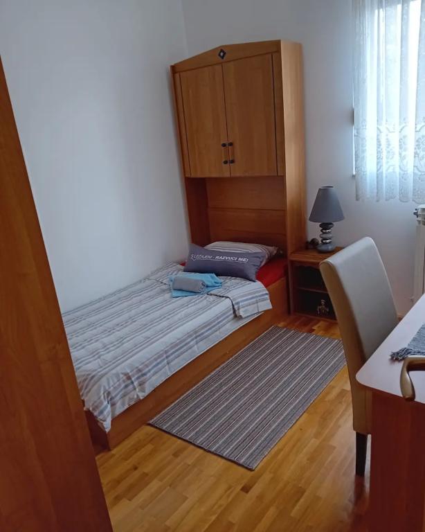 Apartment Antonio is a fully equipped two-story apartment. The apartment has 5 beds. The apartment has: 1 large double bed, 1 bed for 1 person and an additional pull-out bed for 2 people. The apartment has 2 portable air conditioners. The apartment is 150 meters from the center located on square in a beautiful quiet street. Within easy reach of all shops, restaurants, fast food, cafes, pharmacies, sports hall, market square. The apartment has its own parking secured by an electric ramp.