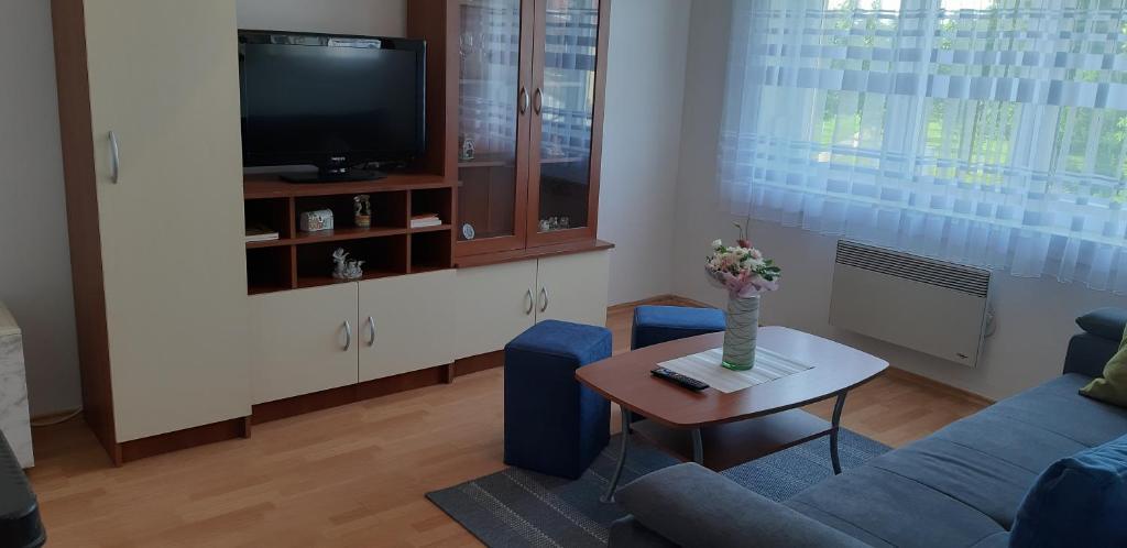 Apartment Ivana is located in a residential building on II. floor. There is a free parking space under the window of the apartment. The apartment consists of two bedrooms, bathroom, kitchen with dining room, living room. It also has a balcony with a garden view. In front of the entrance to the apartment there is a key safe (self check-in/check-out), free Wi-Fi, washing machine. in the kitchen there is an electric oven, a hob, a fridge, a kettle, cutlery, a set of cutlery, a set of cooking utensils, basic spices. in the bathroom there is a washing machine, a hair dryer, a set of towels for each guest. The center as well as the main town square are about 300 meters from the apartment. A grocery store and a bakery are located 20 meters from the apartment. There is a nicely decorated cafe next to the building.