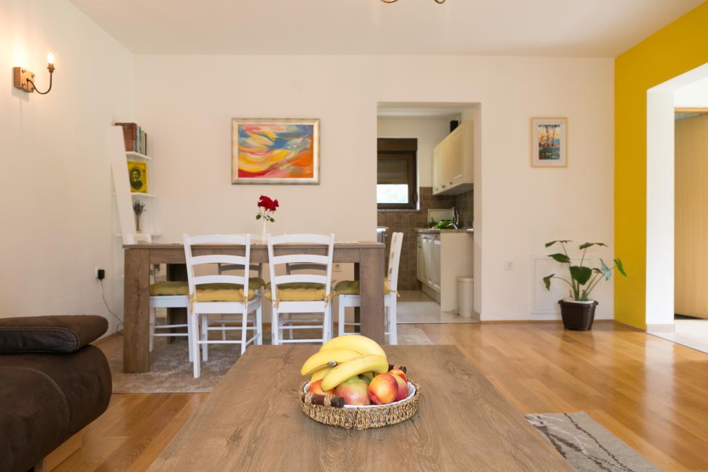 The house is sufficiently isolated and far from the first neighbors, surrounded by forest and greenery, which makes staying in the garden pleasant and relaxing, yet it is close enough to the city center, restaurants, shops, etc. The large yard offers the possibility for various sports activities, and for small even great soccer players have a goal and a ball at their disposal.