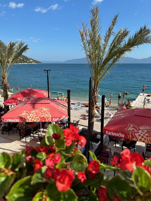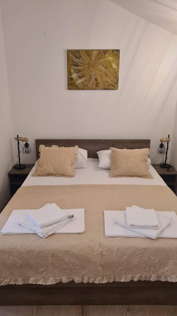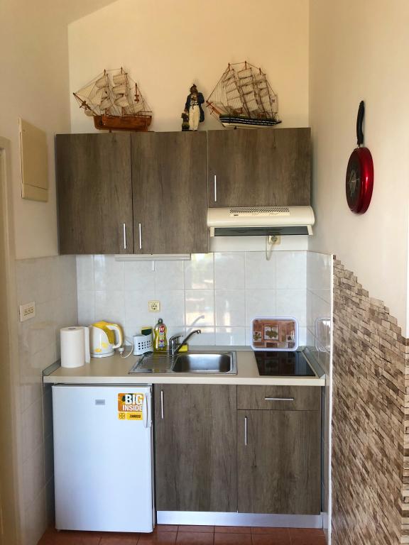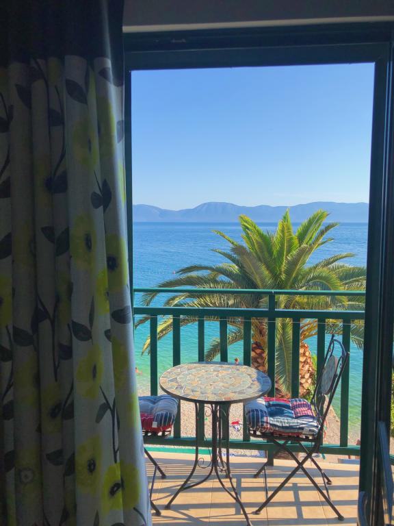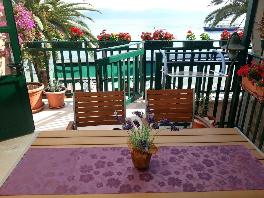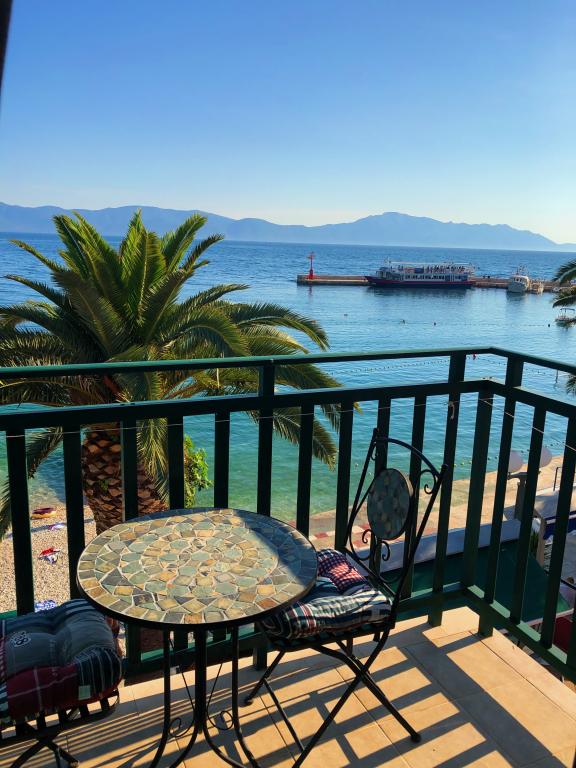 Holiday house, first row to the sea. The house has two studio apartments with a double bed and an extra bed. Maximum number of persons 4 adults + 2 children. The Upper Studio has a balcony with a beautiful open view of the sea. The Lower Studio has a terrace of cc 25 m2 with a dining table and a beautiful open sea view. Both apartments have their own mini kitchen and bathroom with toilet. Free internet available in the entire facility. Free parking. The house is rented out as a whole, and the guest has complete privacy. The owner lives nearby.