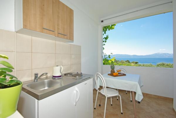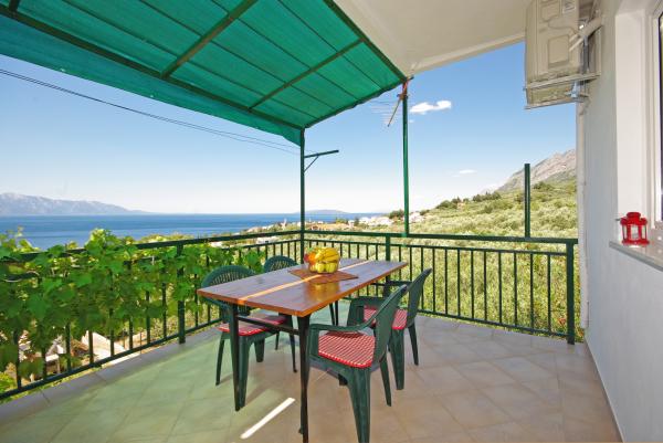 The house is situated in nature and olive trees, in a quiet environment about 500 meters or 15 minutes walk from the sea. The house has a beautiful view of the sea and the mountain Biokovo.