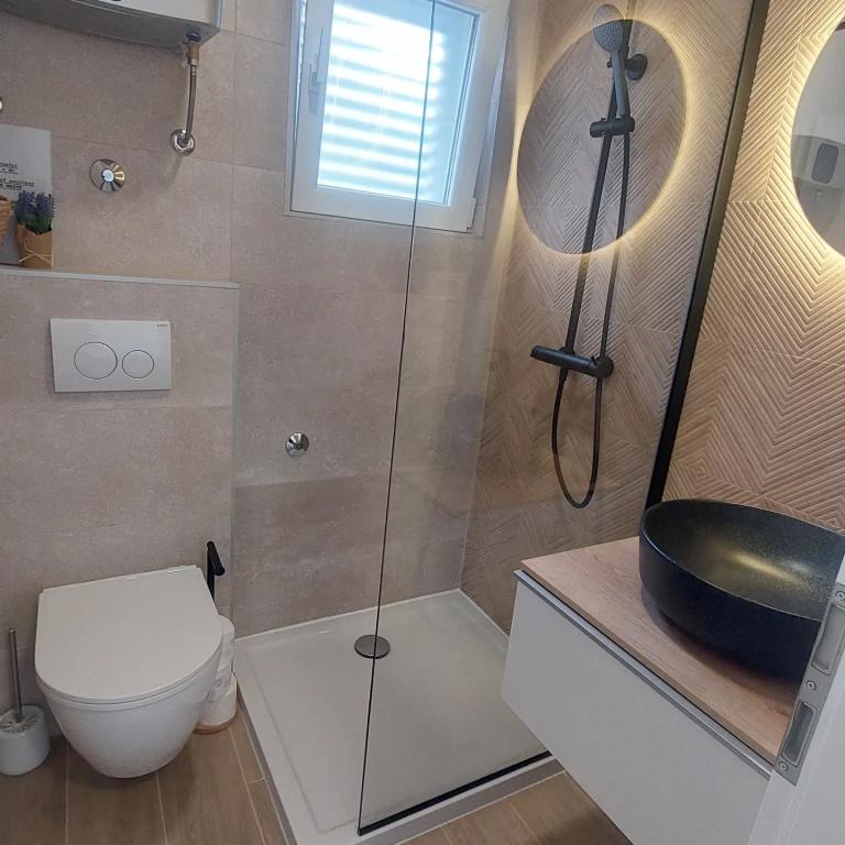Residential tax is included in price. Booking confirmation document upon reservationWe also offer equipment for children, if the guest needs it. It is provided on request (baby cot). Umbrellas per apartment. Laundry services on request. Additional cleaning on request. Accommodation units have a kitchen, bedrooms, bathroom and all other equipment that the guest needs. Next to the building we have two parking spaces available, the other two spaces are 2 minutes away by car, 5 minutes on foot - the owner determines the parking schedule, depending on the reservation. In the yard there is a summer kitchen, barbecue, lounge area, equipment for hanging laundry, space for storing beach equipment, bicycles, scooters. The outdoor shower is set up exclusively for use after arrival