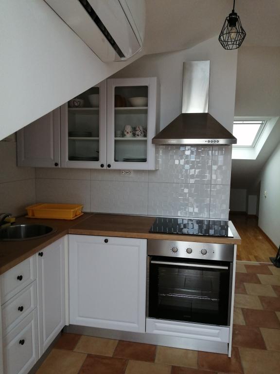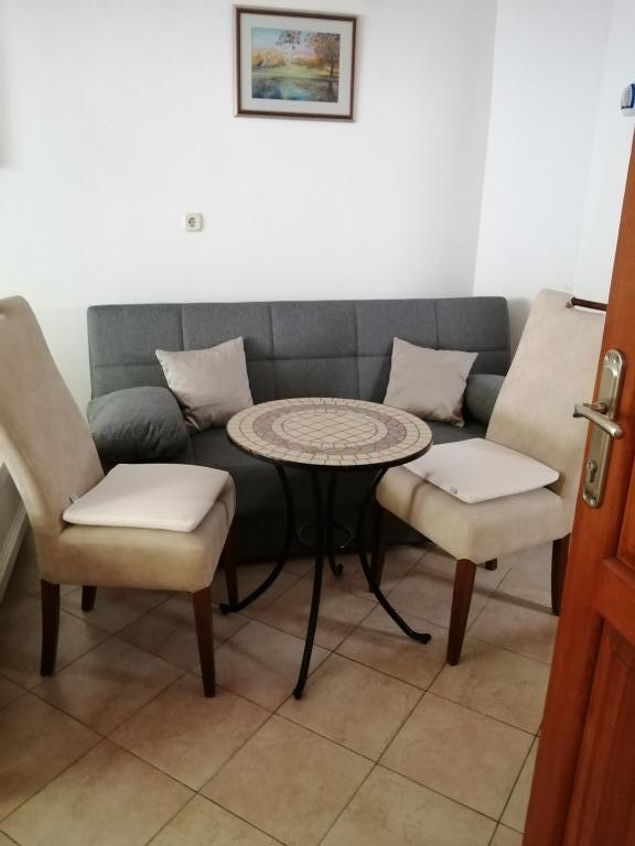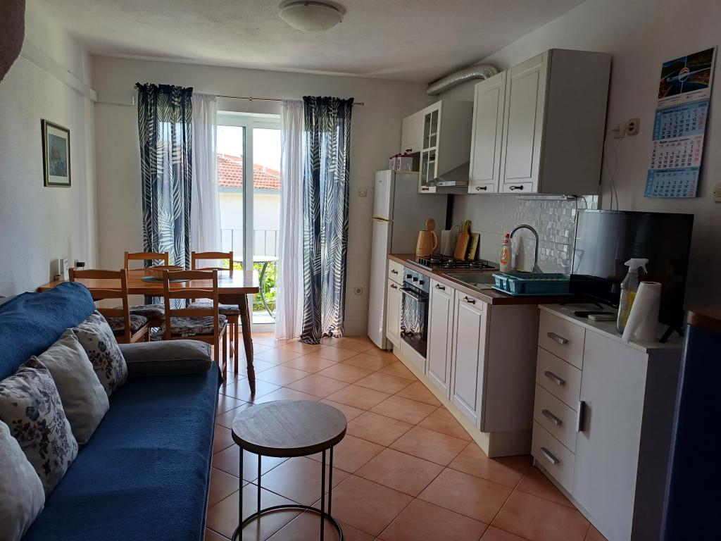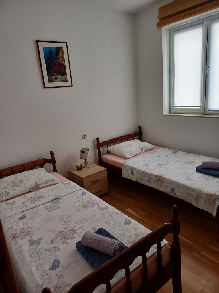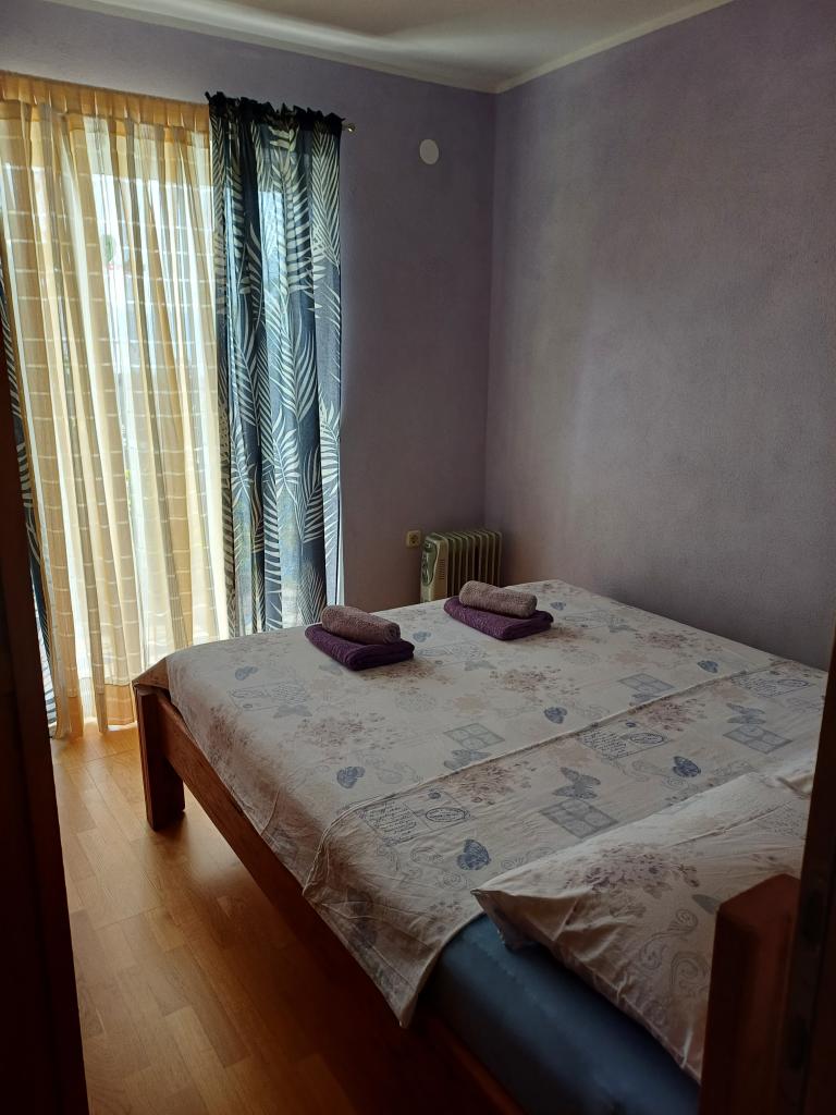 Apartment Lina is a fully equipped apartment in a quiet place near the center. It is a 3-minute walk to the beach, and the same distance to the center. It is located on the first floor of a private house and includes a living room connected to the kitchen, one bedroom with a double bed and one bedroom with 2 single beds and a bathroom. It also has a balcony with a sea view. It is equipped with all basic household appliances (fridge, oven, stove) and includes air conditioning and a TV and a sofa bed in the living room. The price includes a parking space 200 m from the apartment, but upon arrival, for the purpose of unloading your luggage, you can drive a car 30 m from the apartment. The host is located in the same place and upon arrival will welcome the guests and show them the apartment and parking lot and hand over the keys.