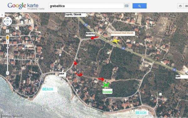 Grebaštica is a picturesque little town located in the bay of the same name, between Šibenik and Primošten. The beaches are pebbly with crystal clear sea. The place is ideal for a quiet family vacation. We rent 1 comfortable apartment on the 1st floor:, size 70 m2, consisting of: 2 bedrooms with double beds, bathroom with toilet (shower), living room and kitchen (fridge with freezer), terrace 20 m2 with sea view. The apartment is air-conditioned, has TV SAT, Wi-Fi Internet access, grill, garden... We also offer a newly renovated studio apartment for 2 people. Welcome! Your hosts - Mirko and Jadranka; tel: +385 95 832 3015