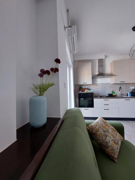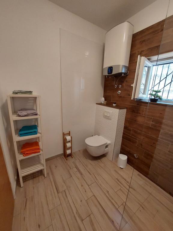 From the parking lot, which is located on the main road, there are more than 45 steps to the apartment. You have to carry everything up these steps because the apartment is not accessible by car. It is located in the middle of a hill and there is also a slope with steps to the beach. Very difficult to access with a stroller. The beaches are concrete (piers), the sea is very clean, but full of sea urchins. The apartment has a nice bathroom, everything else is very average. It needs to be whitewashed. Questionable cleanliness, unfriendly owner. The area around the house is not well maintained. There are no shops nearby.
