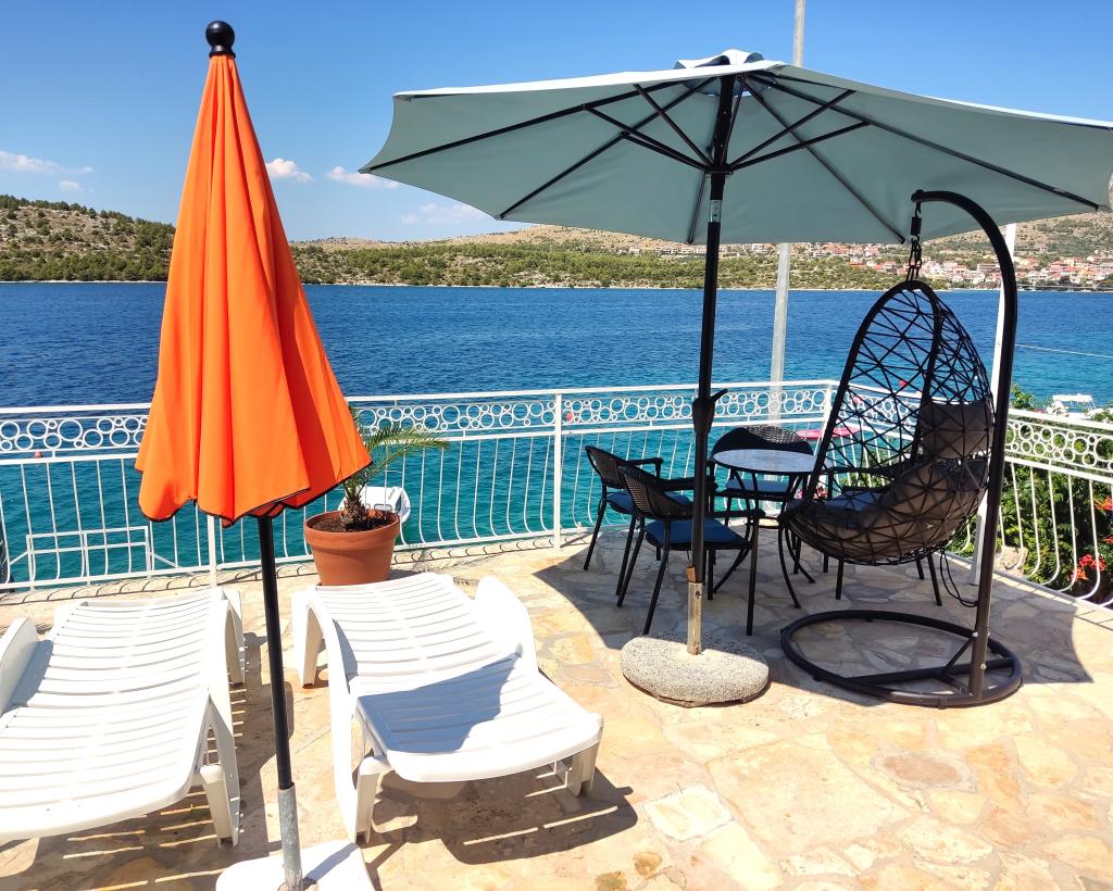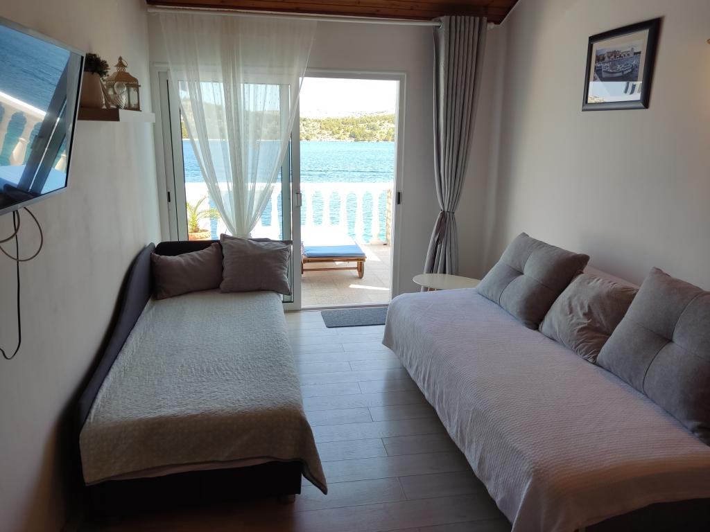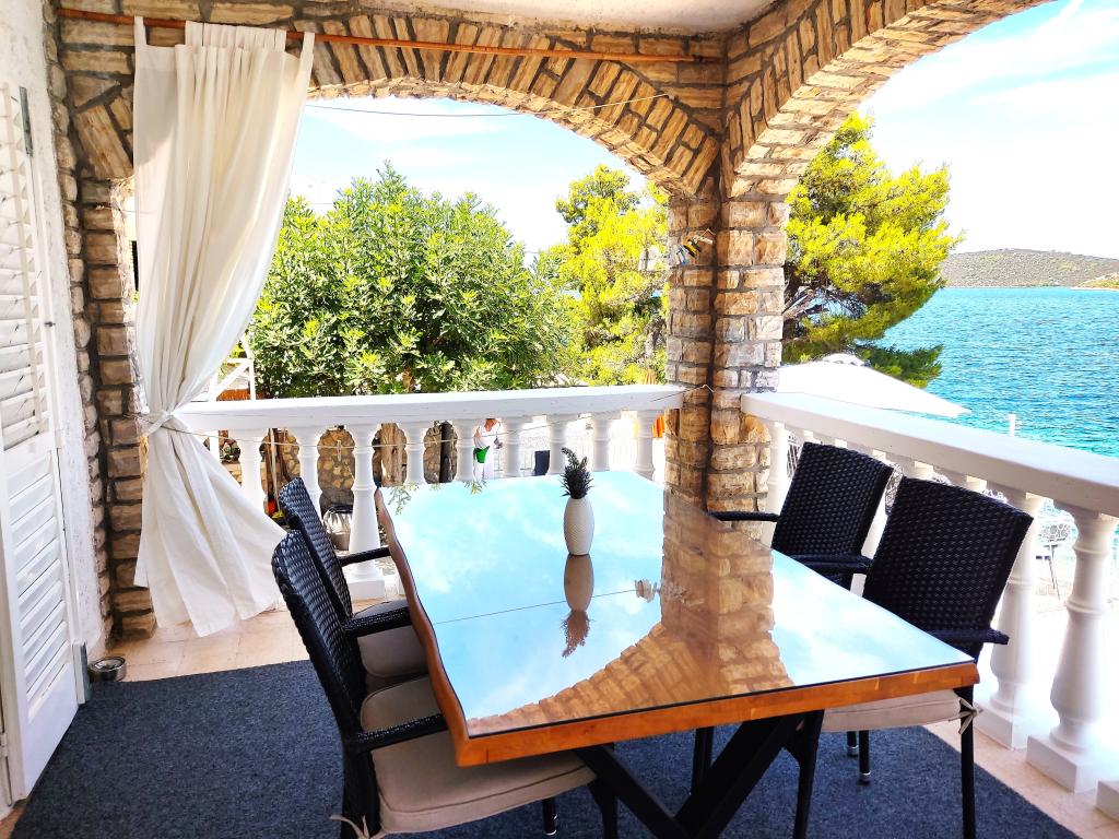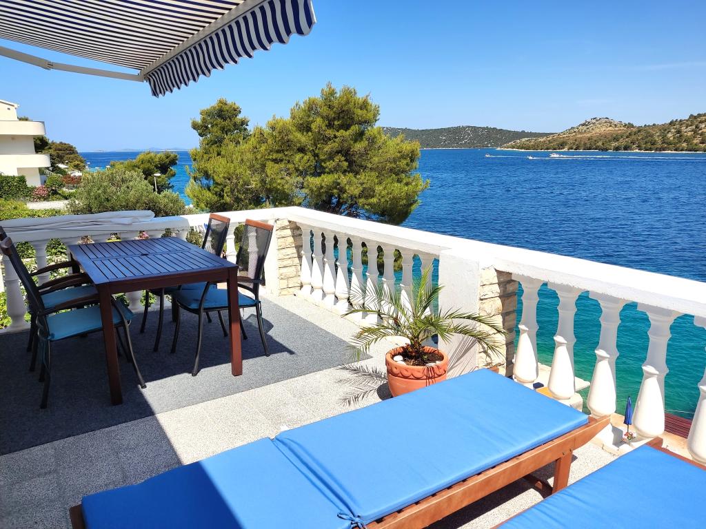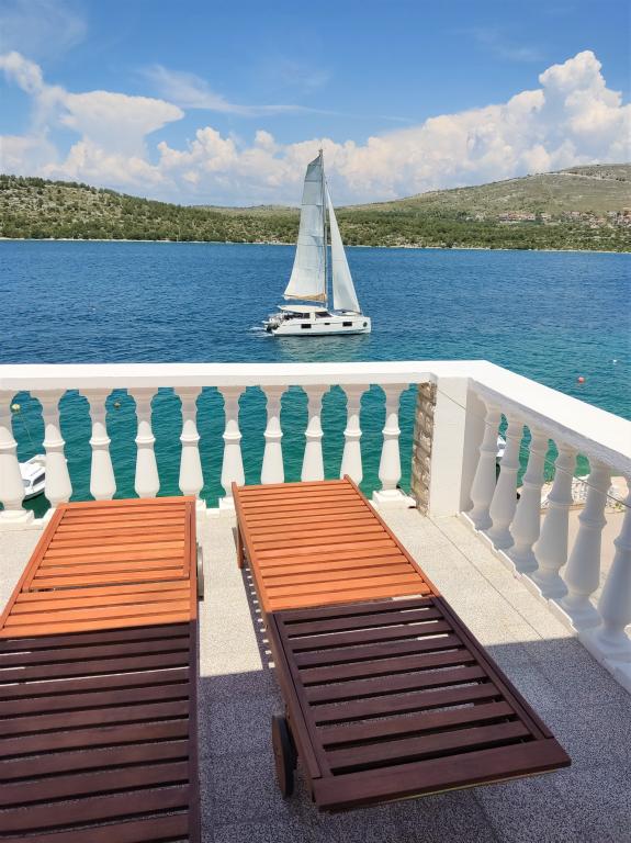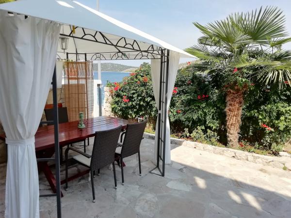 Whole house with three apartments is for rent, ideal for three families and groups up to 12 persons. The house is located in a nice location , 7 m from the beach in the quiet tourist place Šparadići. Two apartments have spacious terraces with beautiful sea views and the lower apartment has a fenced yard. Also is available a large terrace above the sea, with a grill and two garden tables, where guests can stay together in the shade of the fig and the vine tree. Owners don't live in the house. All apartments have air conditioning, free parking, TV, WiFi, free sunbeds and umbrellas on the beach and terraces. Possibility of boat moorings in front of the house. An ideal place for your family holiday. Welcome.