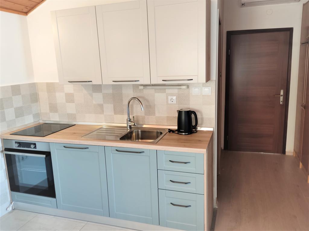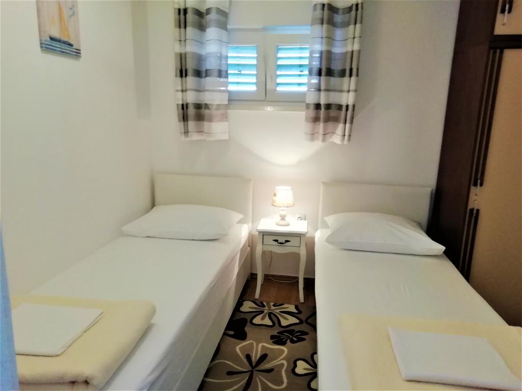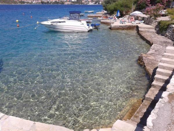 The house is on super locaton- several meters from the sea. We were tree families-all house was ours. We had our own seaside, sunbeds, umbrellas, a big yard and with outside kitchen- all were included in these apartaments' price. Everything was clean, enough space. The owner was incredible and very helpful. He met us with welcome cold drinks, recommended places to have dinner. Before our trip he sent photos with water, beach for kids and etc. what we asked. In this place aren't any shops, but everyday there are local people, who brought bread, icecream and vegetables every morning.