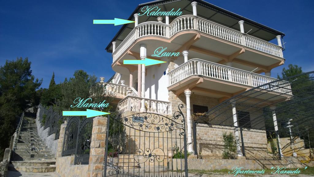 Welcome to Apartments Karmela! The house is located in a quiet part of Grebaštica, surrounded by Mediterranean gardens, while across the bay there is a dense pine forest - an ideal place to escape from the hustle and bustle of the city. In each of our three apartments you can spend a relaxing holiday with your families, children and friends. The crystal clear sea is only 30 m away, while the local pebble beaches are 100 to 300 m from the house. Grebaštica, in addition to its attractions (defensive wall Bedem, church of St. Peter and Mary, source of Kanel), has a very good geographical position, so during your stay you have the opportunity to visit numerous nearby natural attractions, islets and historical sights such as: Primošten ( 15 min), Šibenik (20 min), Knin and Split (1 h), Dubrovnik (4 h) as well as beautiful national parks: Krka Falls (50 min), Kornati (30 min to the place of departure of the boat), Plitvice Lakes (2, 5 h)... . We will be happy to host your pets as well!