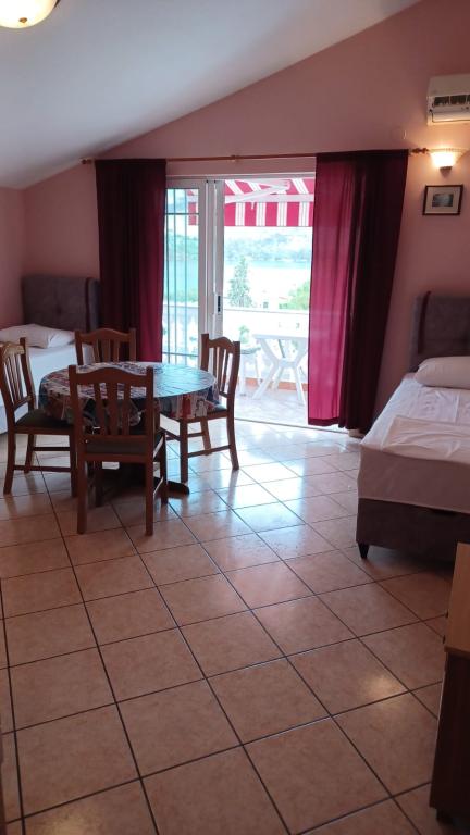 Beautiful, large and clean apartment that is fully equipped. Nice view of the sea. The beach is within sight and a few minutes walk. The owner is friendly and especially helpful in everything, for example he helped us repair the air conditioner in the car. So we are satisfied and will come back again in a year. It's quiet here. Frank!