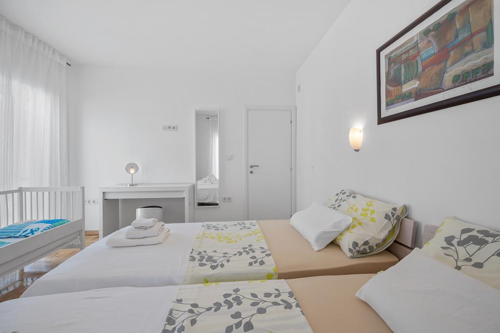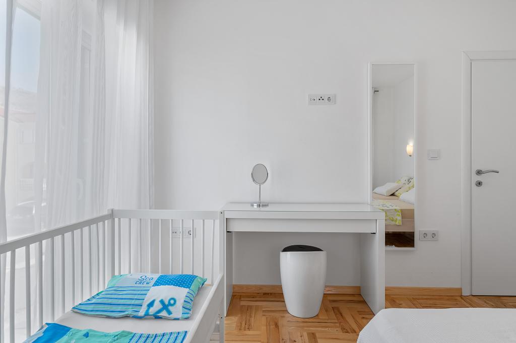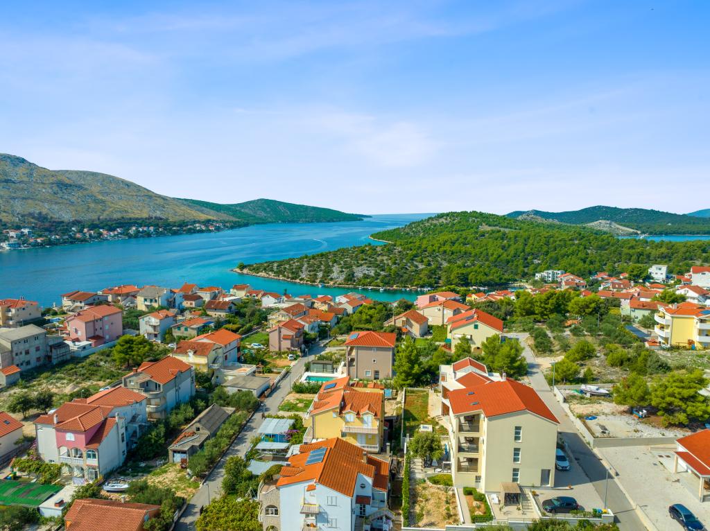 Villa Salvia Adriatica - a 4 star category in its two new suites, Salvia on the first and Adriatica on the second floor, offers an unforgettable vacation experience. Each apartment of 100 m2 has two bedrooms with bathrooms, a kitchen with all necessary appliances and a large living room with a spacious covered terrace (30 m2) with a large dining table and a lounge for a pleasant gathering and relaxation with a view of the coast of Grebastica , nearby islands and blue sea open sea. Free Wi-Fi, satellite and terrestrial television are available. The apartments are air-conditioned, with heating in the colder days. There are enough parking spaces in the yard. Our apartments are fully adapted to the children's stay. In addition to the protection for sockets and baby chairs / cribs we also offer a crib on your inquiry.