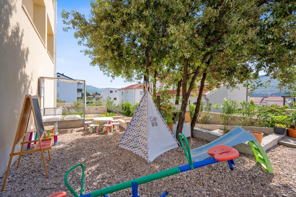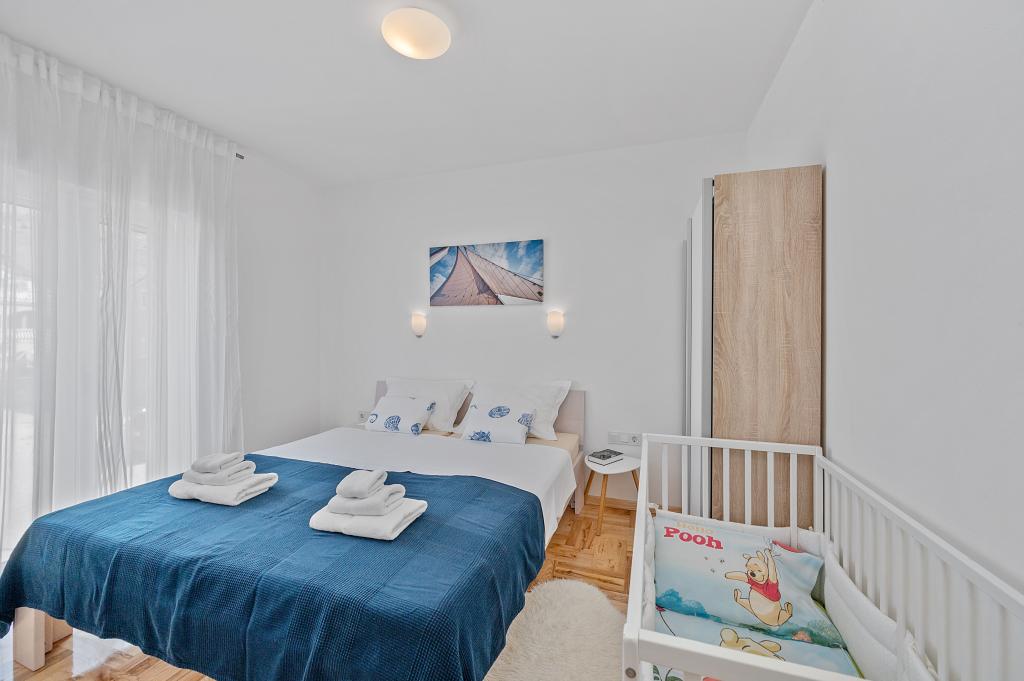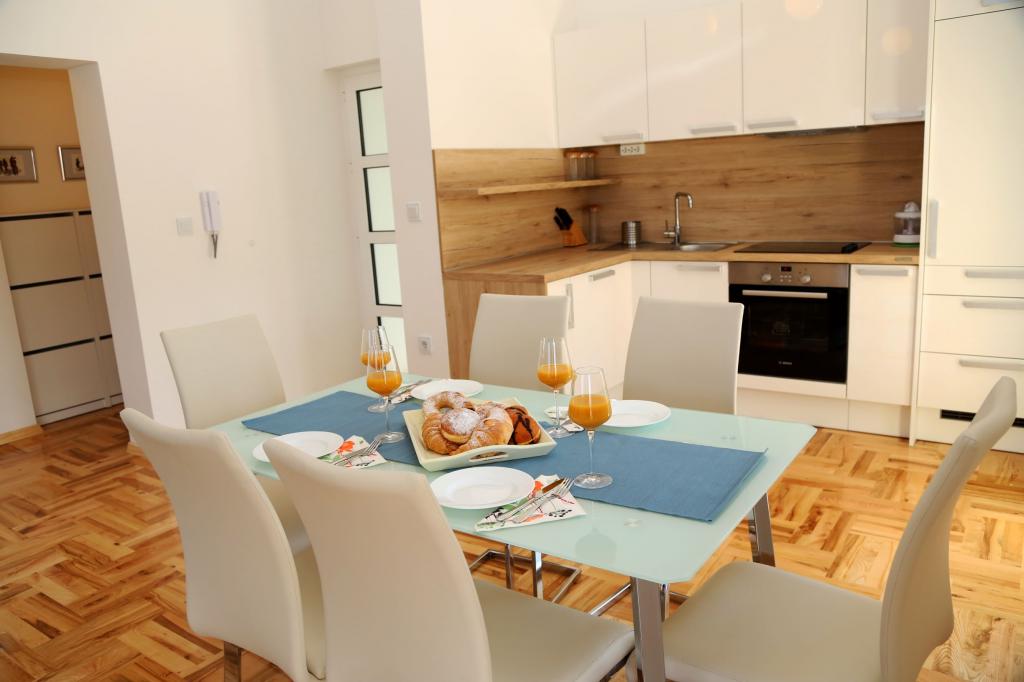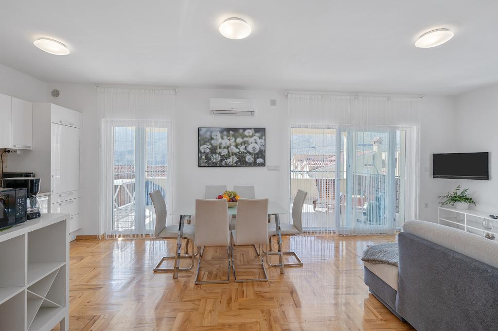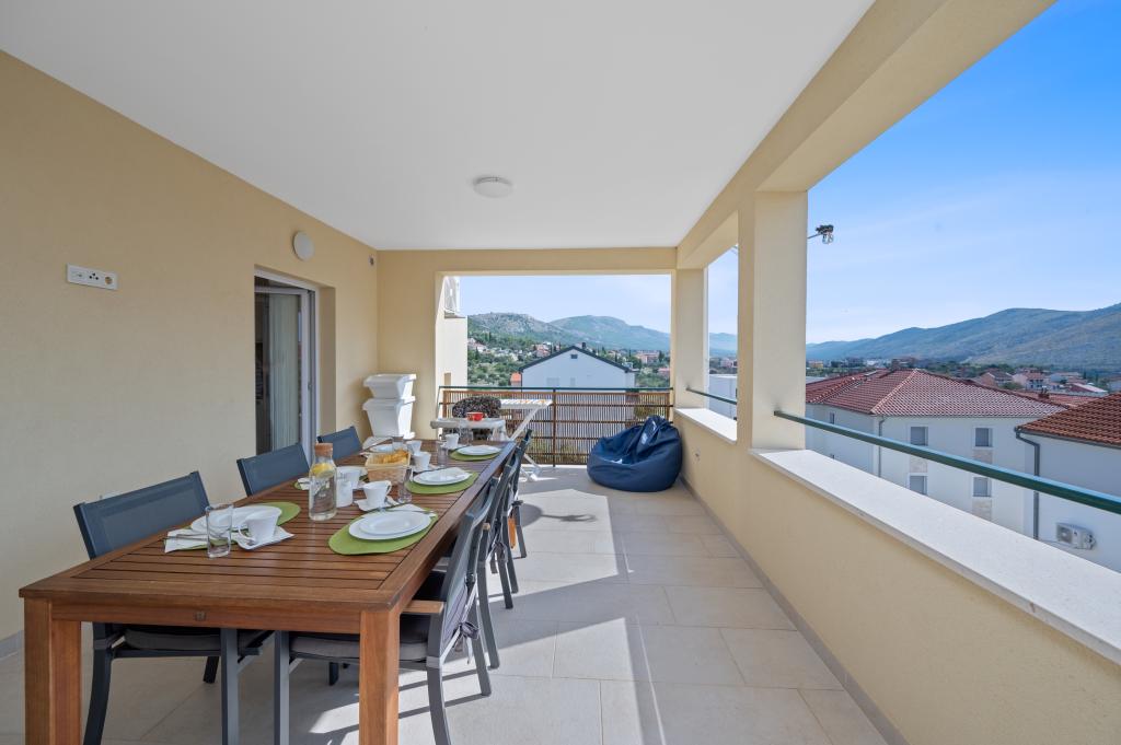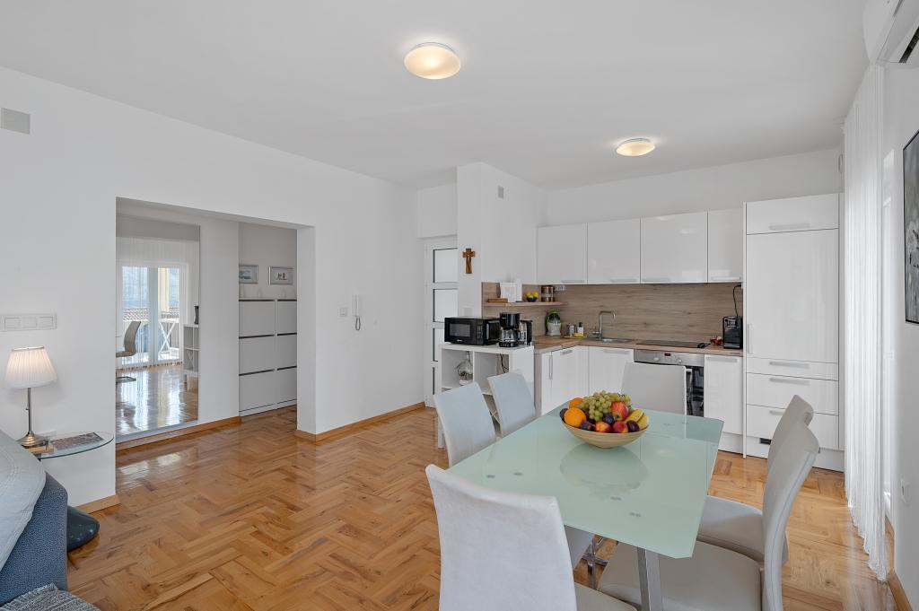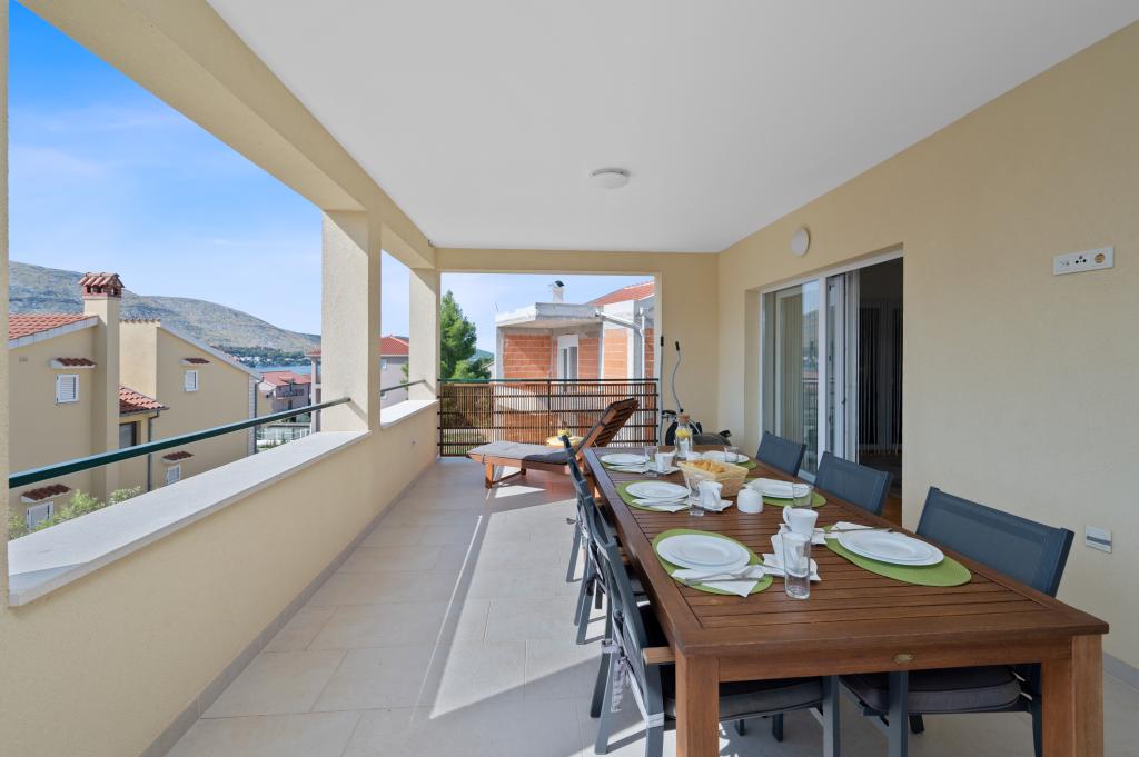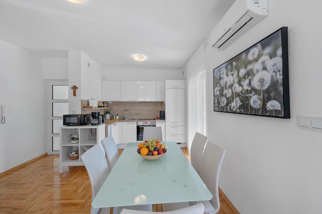 We spent 4 days with our 4 children in this beautiful and tastefully furnished apartment. The decor of the apartment is great, it has nothing missing and it is very, very clean. We had enough space and two bathrooms are worth a real gold with a holiday with several people. Also great is the huge terrace with view on three sides. One notices immediately that the landlords have put on quality and not on quantity. Extra praise for it! For 17 years we are regularly on holiday in Croatia and the landlady is the nicest we have met so far. We can give the apartment and the landlords just the very best review. And every one of us is looking forward to our next stay there.