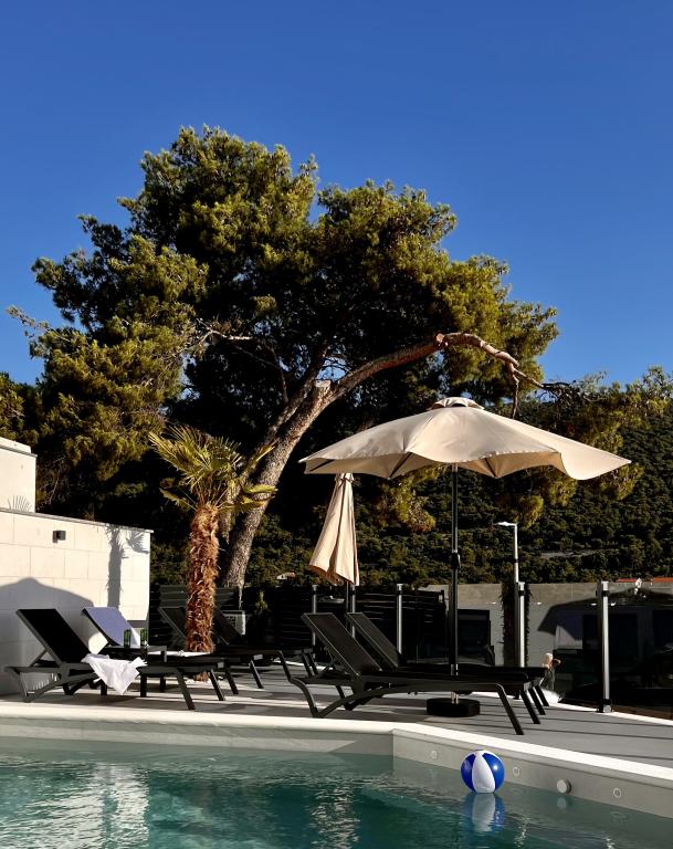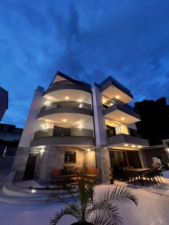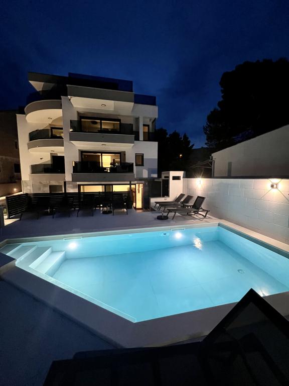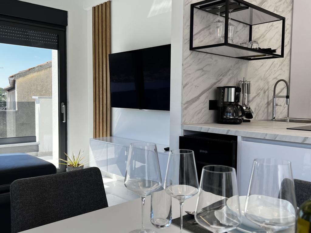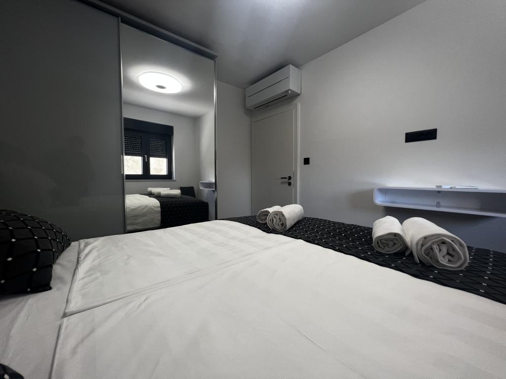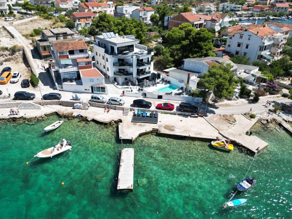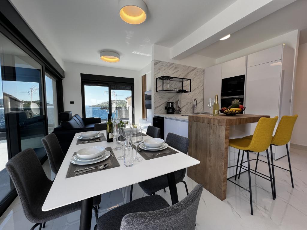 Villa White Pearl is located right on the beach in the quiet cove of Grebaštica, only 15 minutes from the historic town of Šibenik, which is under UNESCO protection. The villa was built in 2023 and contains 6 luxury apartments with a total accommodation capacity of 28 beds. Each apartment is equipped with high-quality furniture from renowned brands, and includes free WiFi and satellite TV. In addition to the apartments, all our guests have at their disposal a seasonally heated outdoor swimming pool with hydro massagers, deck chairs on the beach, barbecue equipment and private parking at no additional cost. The balconies of the apartments also offer a beautiful view of the sea and the pool. Only a few steps away from the property are the beautiful Banovci beach, shops, restaurants, bars and other amenities necessary for a perfect family vacation. We definitely recommend that you use your stay in our apartment to explore the many sights in our surroundings and take back unforgettable memories from your vacation.