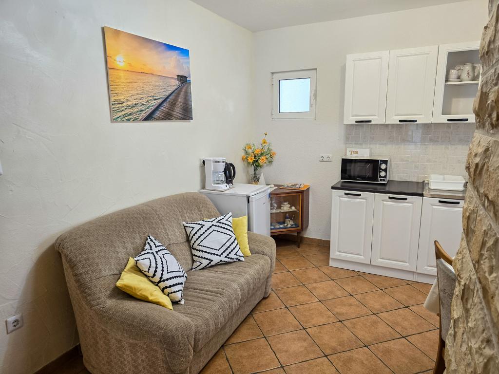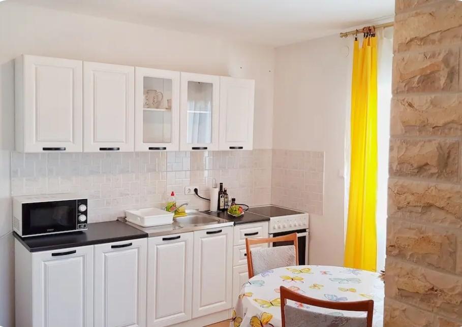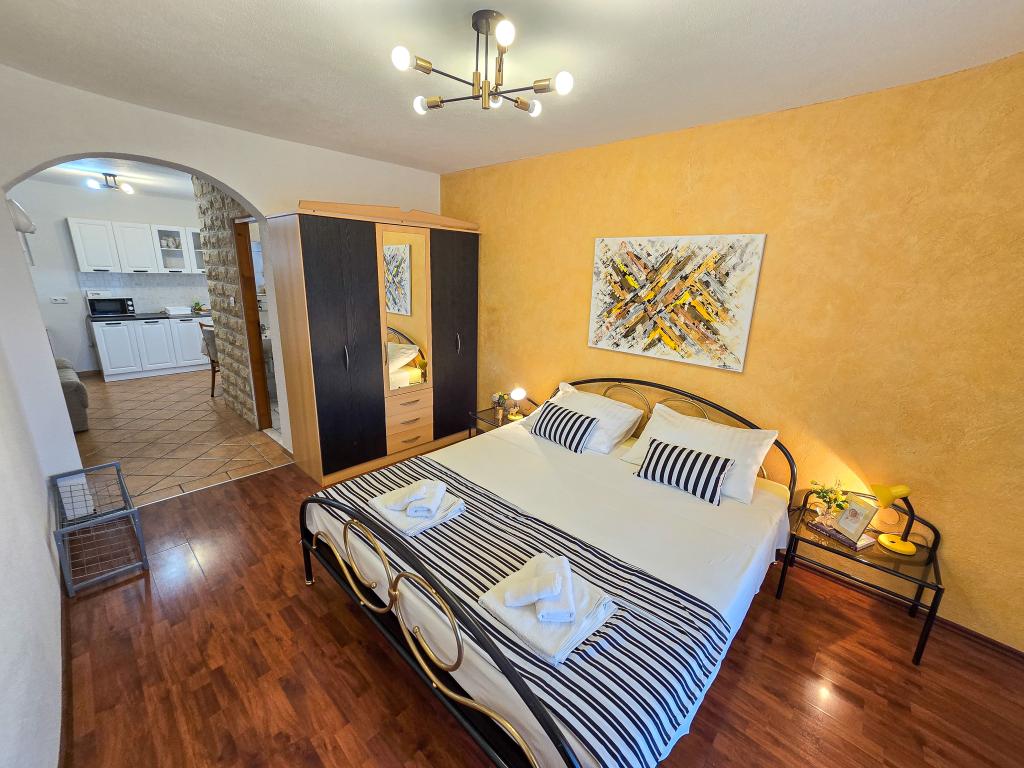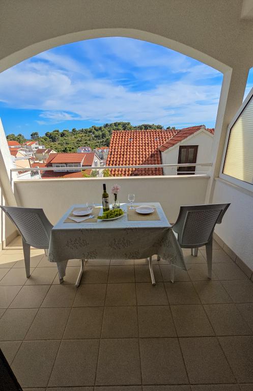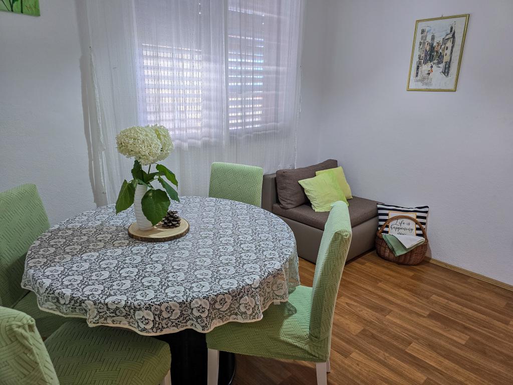 Great smjetsaj, great view from the balcony, very tidy apartments; very friendly hosts, unobtrusive, and very accessible to all the information. Peaceful area, parking right in front of the house, grocery store nearby, 15min walk to the center. Plaza at bay Pokonji down the beautiful, clean sea, with several restaurants, close to the path to the beach steep (great training), but has a way around to reach by car. Extremely satisfied.