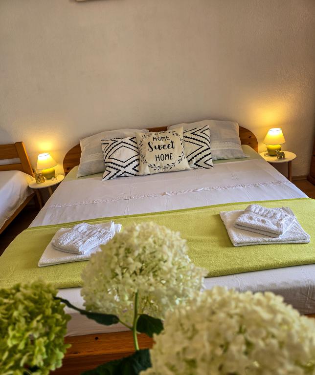 We are located on the island of Hvar, in the quiet part of Hvar town, only 10-15 minutes walk from the city center or 5 minutes by car. We are located a few minutes walk from the small shop where you can buy everything you need and from the most beautiful beaches in town. The beach has two restaurants, with the possibility of renting sun loungers, umbrellas, boats, pedal boats and the like. Our family house has a large terrace with garden and a fireplace that you can use. We also have private parking. Almost all of our apartments / rooms have sea views, the islands of Vis and Korcula and Pakleni islands. Bed linen, towels (large and small), sojourn tax, electricity and water use parking place, sanitary facilities, final cleaning, pets allowed and internet. In case you choose to be our guests, we can welcome you to the waterfront or catamaran bus, depending on the time of your arrival. For more information please feel free to contact us! Thanks and welcome!