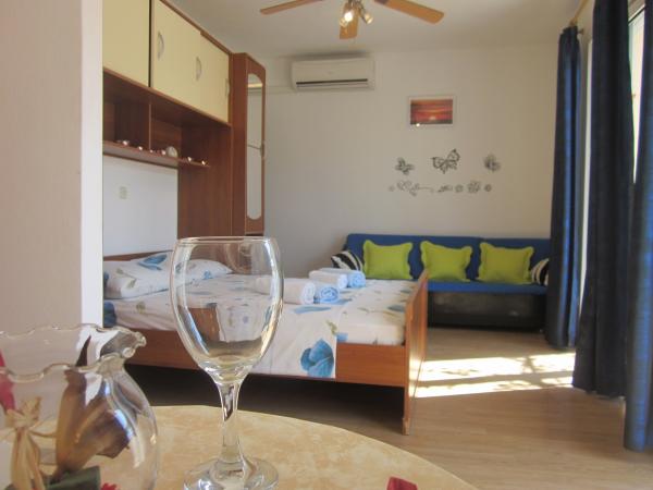 The facility is located at the entrance to the town of Hvar, 5 -10 minutes walk from downtown and the beach, on a quiet and peaceful area overlooking the sea, the city, and the hellish island fortress. The apartments are located on the first floor of newly built detached house, fully furnished and all have terraces overlooking the sea, town and islands, the garden is a barbecue for all guests, and with the house and parking, all guests get welcome drink. Arrival at the apartment of 14 hours, and go up to 10 hours.