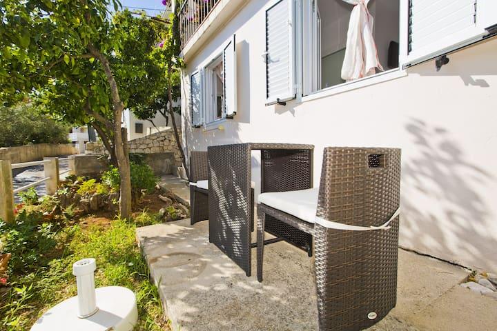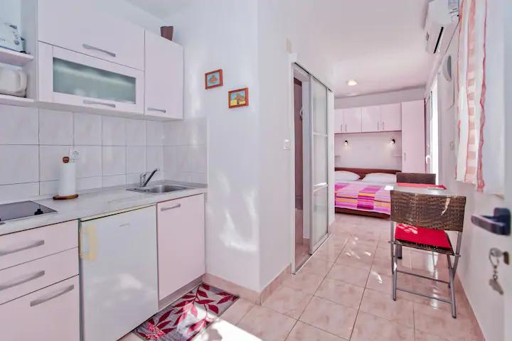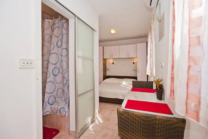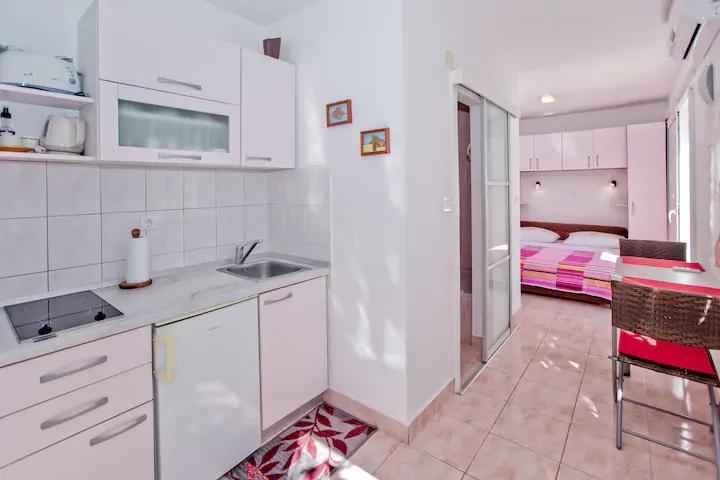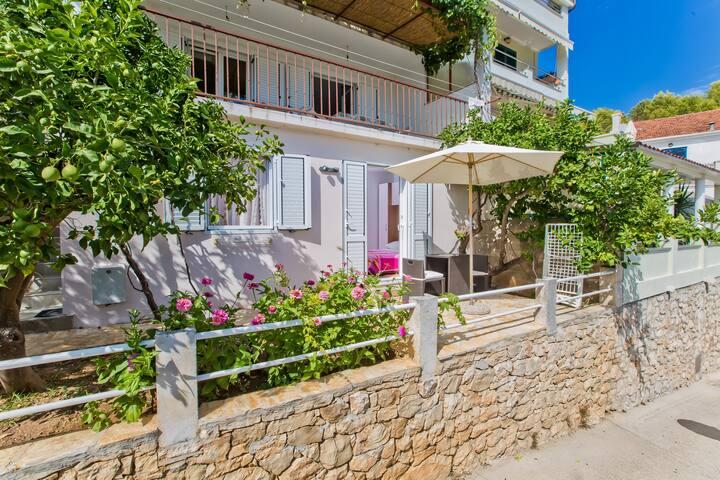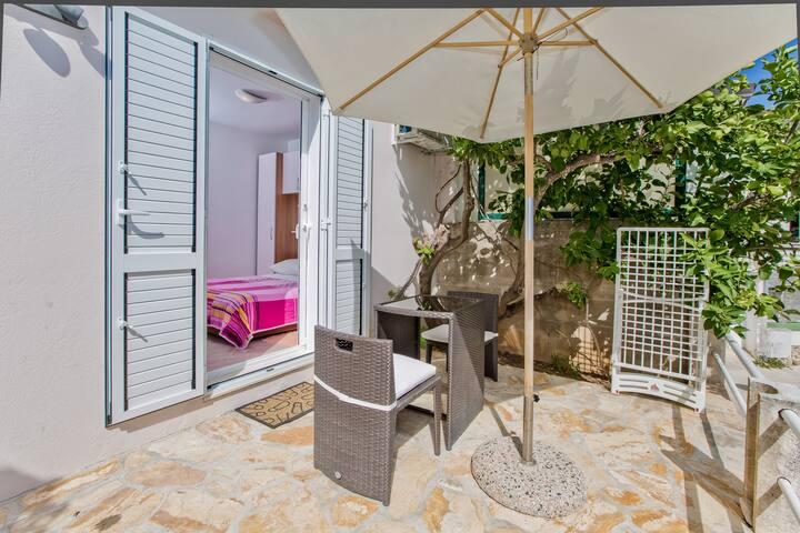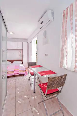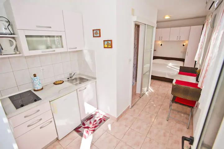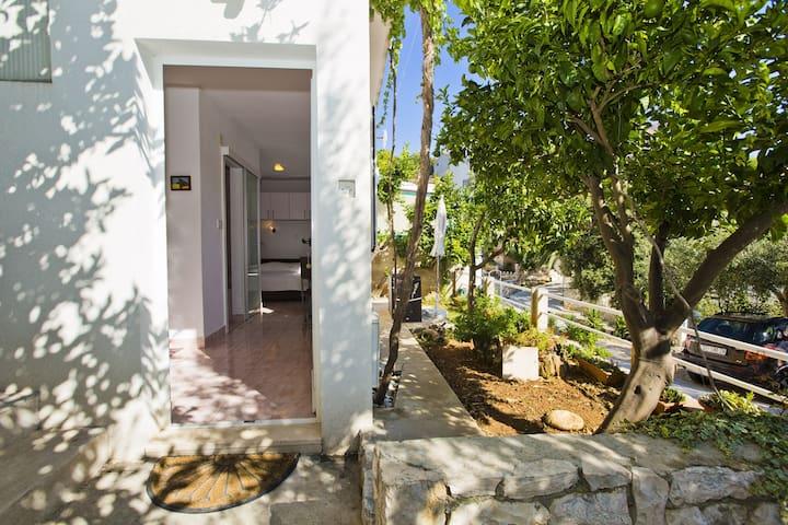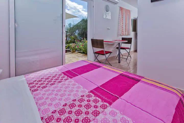 The luxurious apartment, modernly equipped, is located on the first floor of our house and has a total area of 70m2. The apartment consists of a bedroom, a living room, a fully equipped kitchen with a washing machine, a bathroom with a bathtub and an additional toilet. The living room and bedroom are facing south and in front have a balcony with seating for enjoying the unforgettable view of the Paklin Islands and the sea. The apartment is intended for the accommodation of 2 adults, but also for the accommodation of a family with two children. Our studio apartment is located on the ground floor of our house and is an ideal place for couples to relax. The apartment has a total area of 20 m2 and consists of one tastefully decorated room, and has a fully furnished, modern bathroom, a room with a double bed and a functional kitchen (with coffee machine, toaster, water heater, etc.). Both apartments are air-conditioned and equipped with a TV set and Wi-Fi internet connection. Both apartments have secured parking.