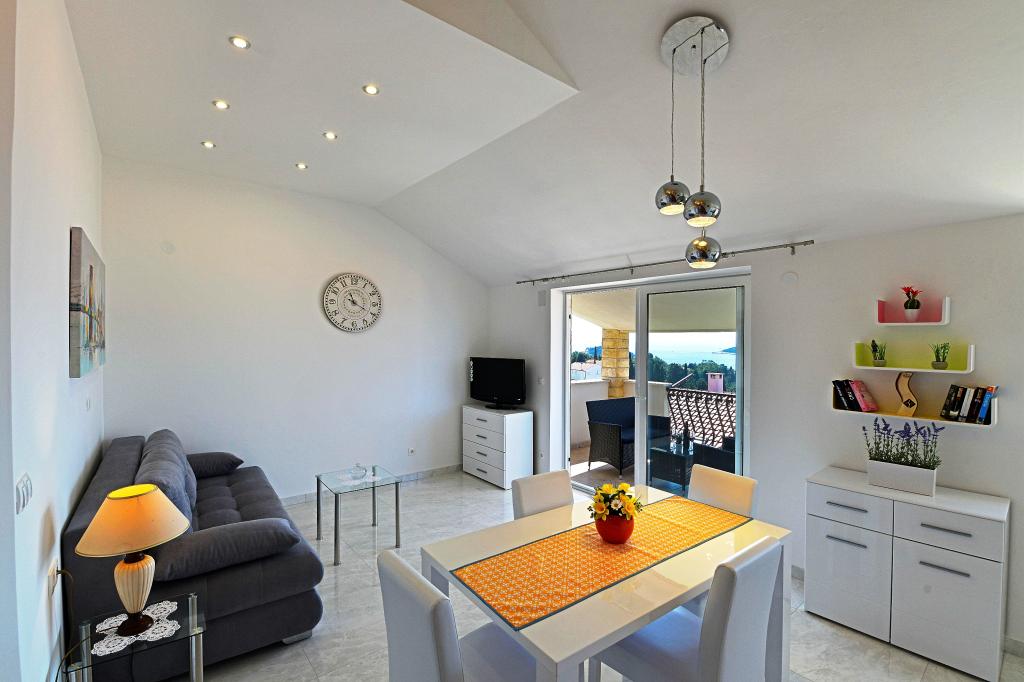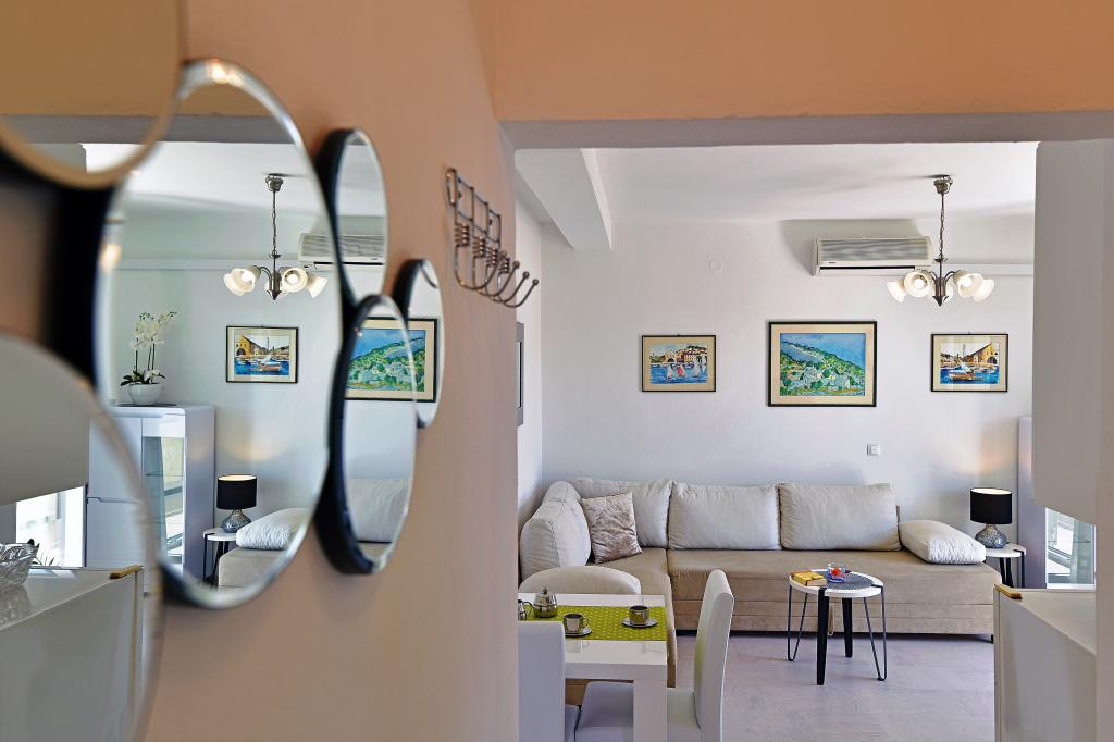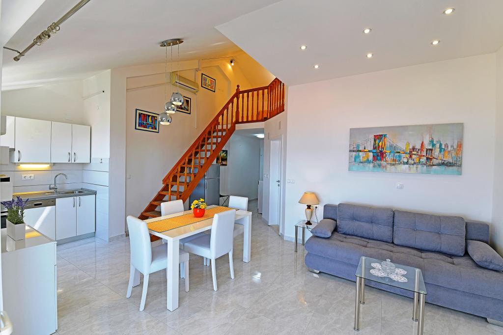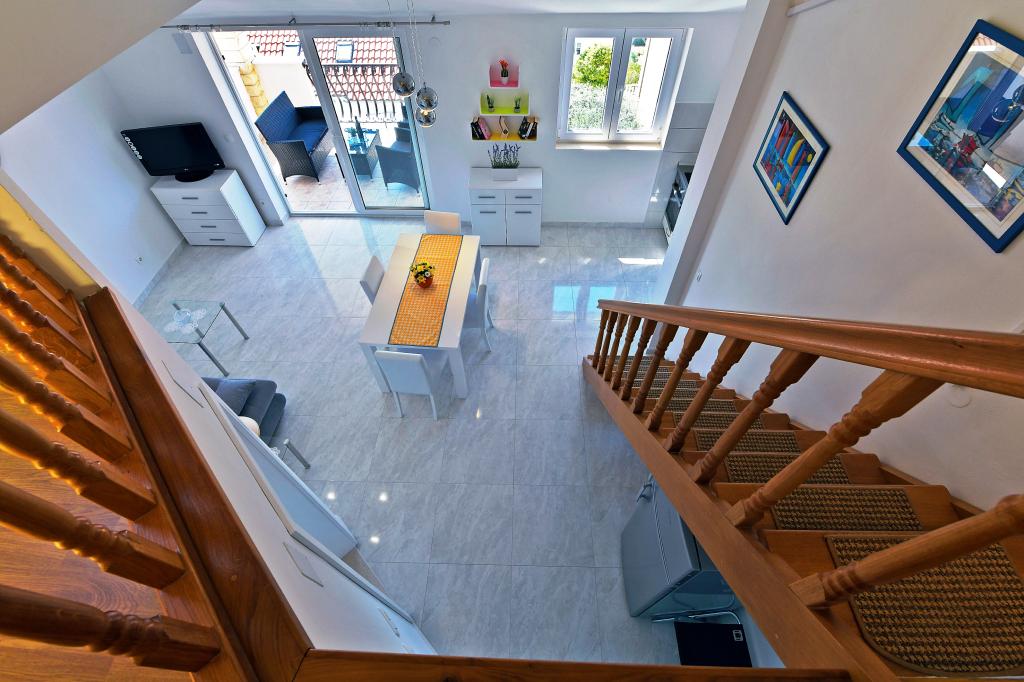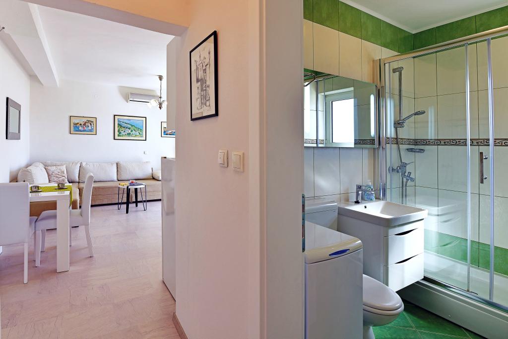 It was our second place in Croatia this summer, and after some troubles (not very principal but annoying) in the previous place we felt like got in the paradise. First, due to the bed, we loved it! The apartment is cozy and well equipped. Hosts are very kind and ready to help. The view from the balcony - not perfect (wall of the next villa), but enough pleasant to observe sea, islands and yachts. Rather close to the beach, and near a small supermarket. However to get more products you should go to the center (Konzum, green market, bakeries), it can take near 20 min one way. We could say that we liked everything in this villa. But, acoustics of the apartment was not very good. Any closing doors make remarkable noise, speaking people in other apartments are audible. Thanks, our current neighbors were not very noisy. Anyway we thanks hosts, we got a great pleasure and recommend this villa.