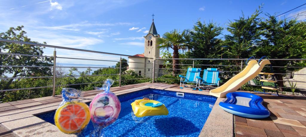 Apartment Krupic is located in Ičići, a village of Poljane, close to the church of St. Peter. Far from any noise, near the Učka Nature Park, and Opatija and Rijeka. Icici Beach is 4 km away, and there are beaches in Medveja and Moscenicka Draza. Guests have free use of hydromassage pools and hydromassage slaps. In addition to the swimming pool there is a children\s pool and a furnished terrace with deck chairs. Apartments also offer free parking next to the property and free Wi-Fi.