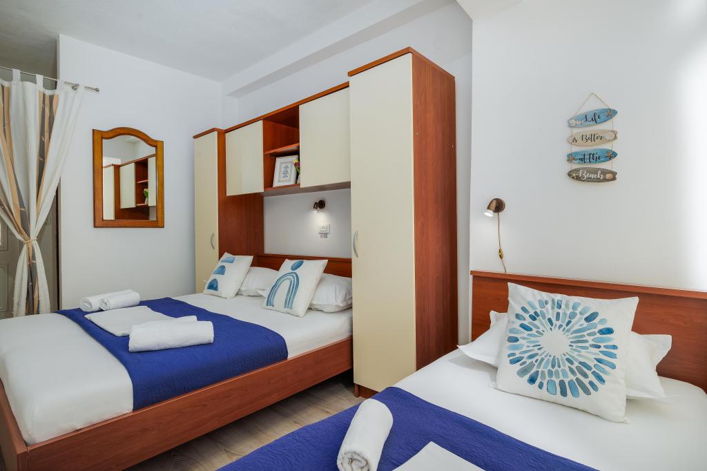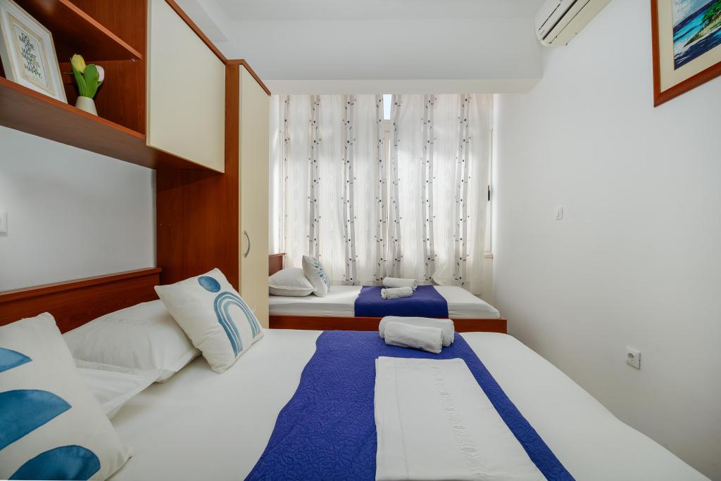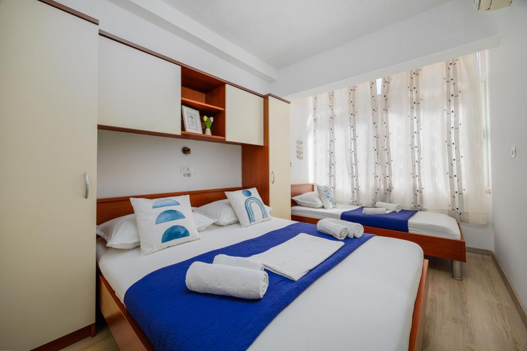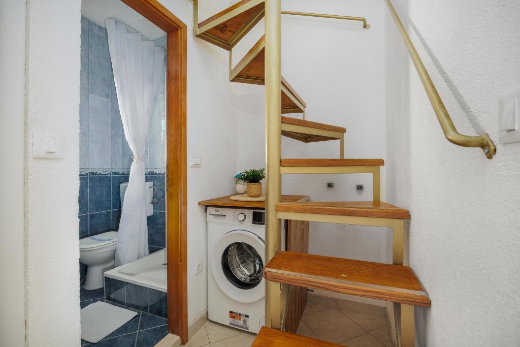 The Blue Lagoon apartment is located in a great location, just 30 meters from the sea and the main beach in the very center of Igrana. Everything you need for a perfect vacation - restaurants, cafes and shops - is just a few steps away, without the need for a car. This modern two-story apartment offers comfortable accommodation for 3+1 people. A special atmosphere is provided by the balcony with a view, ideal for morning coffee or evening relaxation by the sea. The apartment is fully equipped for a carefree stay (WiFi, air conditioning, kitchen, comfortable living room), and thanks to the layout on two floors, it provides additional privacy and comfort. The location in the center of the town allows you to enjoy a peaceful vacation by the sea, with all amenities within easy reach. 30 m from the sea balcony with a view town center WiFi and air conditioning close to restaurants and shops "We will be happy to recommend the best beaches and restaurants in the area "