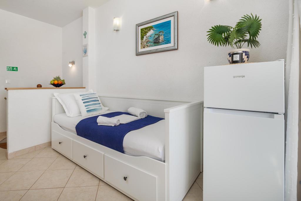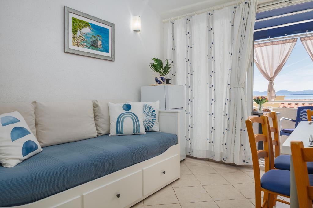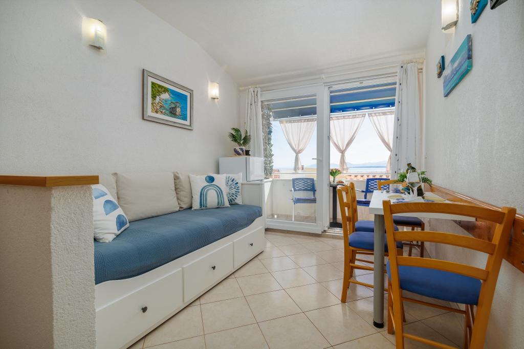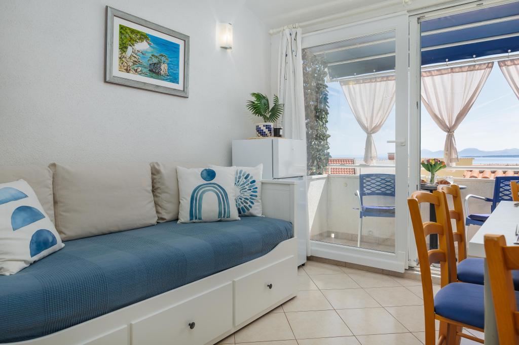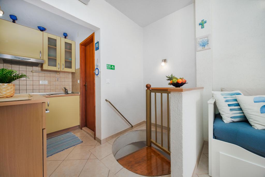 The Blue Lagoon apartment is located in a great location, just 30 meters from the sea and the main beach in the very center of Igrana. Everything you need for a perfect vacation - restaurants, cafes and shops - is just a few steps away, without the need for a car. This modern two-story apartment offers comfortable accommodation for 3+1 people. A special atmosphere is provided by the balcony with a view, ideal for morning coffee or evening relaxation by the sea. The apartment is fully equipped for a carefree stay (WiFi, air conditioning, kitchen, comfortable living room), and thanks to the layout on two floors, it provides additional privacy and comfort. The location in the center of the town allows you to enjoy a peaceful vacation by the sea, with all amenities within easy reach. 30 m from the sea balcony with a view town center WiFi and air conditioning close to restaurants and shops "We will be happy to recommend the best beaches and restaurants in the area "