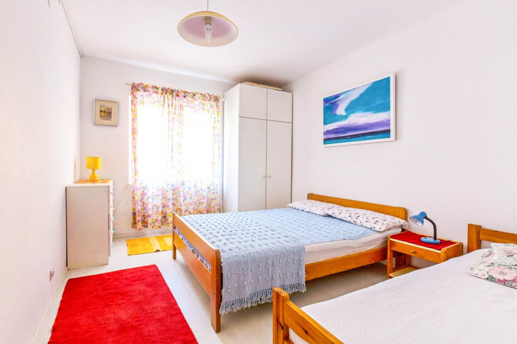 The apartment is located in Igrane, a place located between beautiful sea beaches and the slopes of mountain Biokovo. Above the site rises the slender belfry of the church of Gospe od Ružarija, which gives a place a nice visor. The apartment consists of two bedrooms, living room, kitchen and bathroom and large garden (62 m2) to which each room has an exit. The garden is enriched with flowers, sitting area, barbecue and pleasant shade. The apartment is equipped for a comfortable stay of 5 adults; bed linen, towels, necessary dishes and utensils are provided. Apartment size is 52 m2, and is 100 m away from the local beach, 100 m from the supermarket, the post office and the tourist bureau. One parking space is provided near the apartment. The apartment is air-conditioned and has wireless Internet access. I look forward to your arrival! Jadranka Šimić