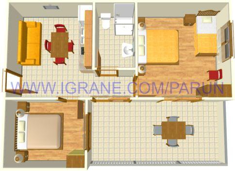 Apartments Parun are located in Igrane. The facility itself is located on the beach in the most beautiful part of the town, which is not far from the center, and at night it is quiet because there are no restaurants in the immediate vicinity. The building has a large garden and is surrounded by flowers and greenery. Each apartment has secured parking for one vehicle, which is included in the price.