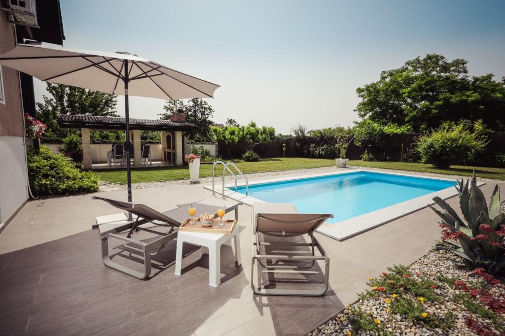 Apartment Rosé is located in a family house not far from the center of Ilok and Principovac. The apartment consists of two double bedrooms, a bathroom and a living room with a kitchen. Guests have at their disposal a gazebo with a barbecue, a yard and a swimming pool, as well as free parking.