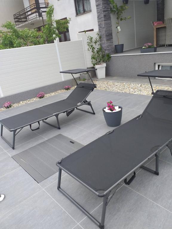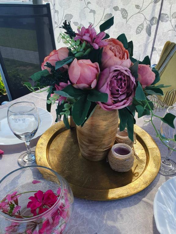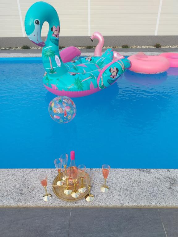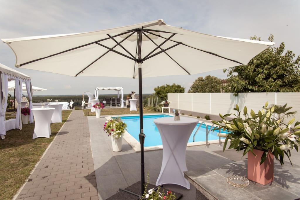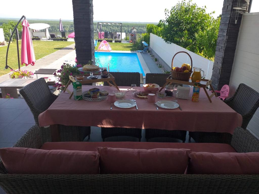 Apartment Dunavski san is located in a quiet location in Ilok with a beautiful view of the Danube. It consists of 6 rooms with a total capacity of 10 beds and two auxiliary rooms, two bathrooms and two living rooms with kitchens. The guests also have a yard, outdoor terraces, a barbecue, a jacuzzi pool and a 32 square meter pool at their disposal.
