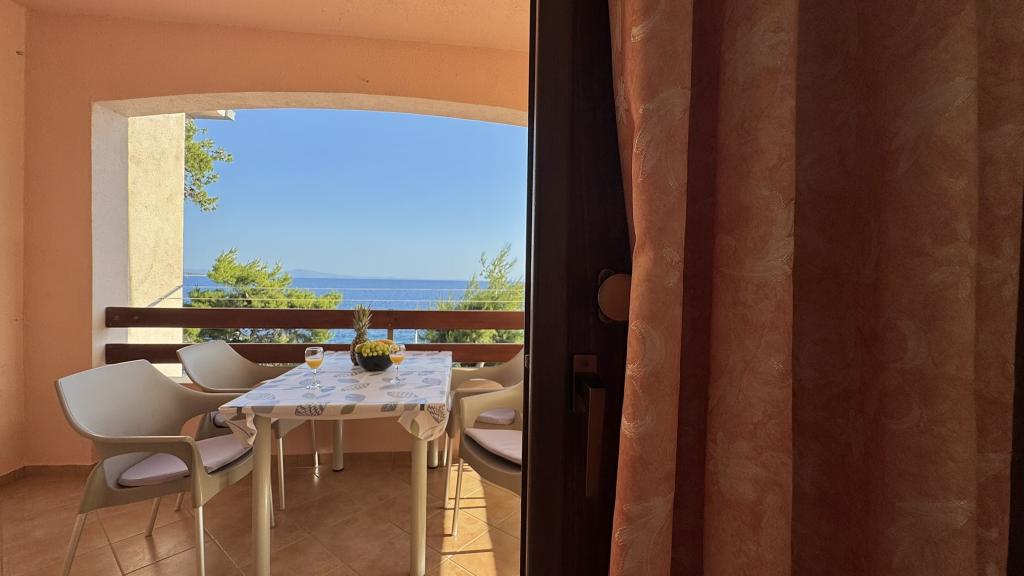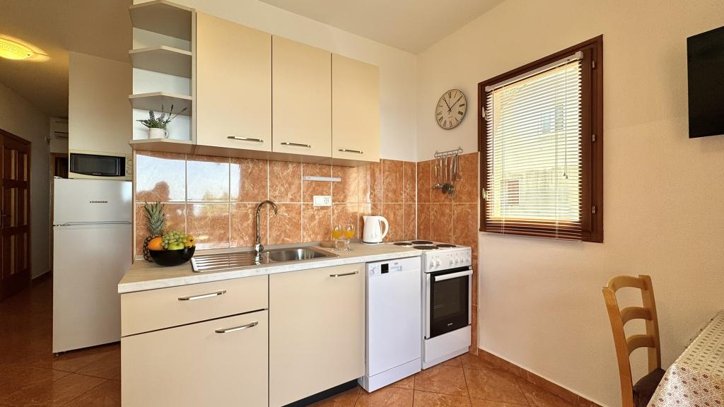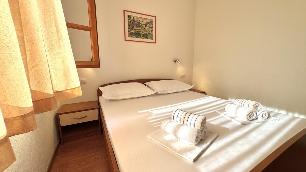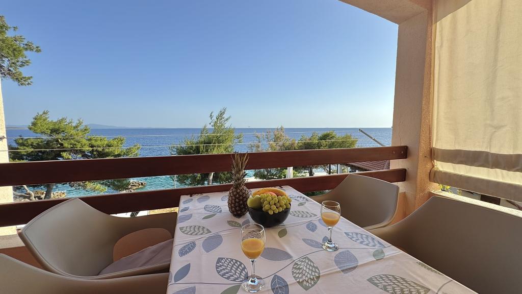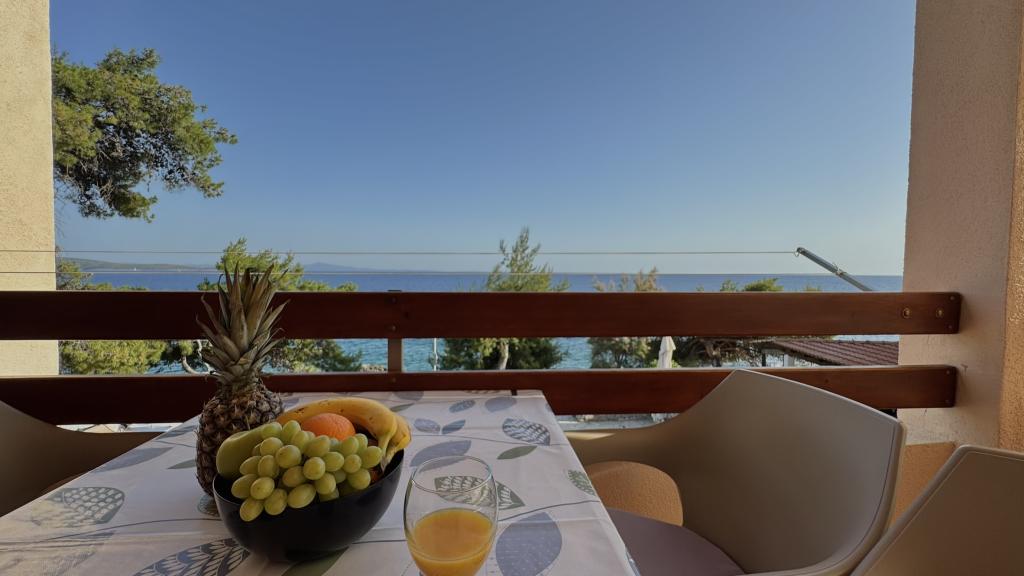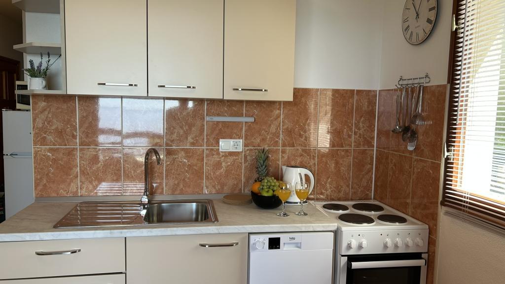 Very nice apartment, extremely clean and well maintained, snow-white bedding, a beautiful large loggia with a view of the sea, exactly as it is in the pictures. The beach is in front of the apartment and there is shade all day. Very kind hosts, definitely to recommend. Jasminka and Miro