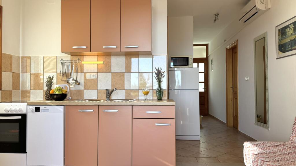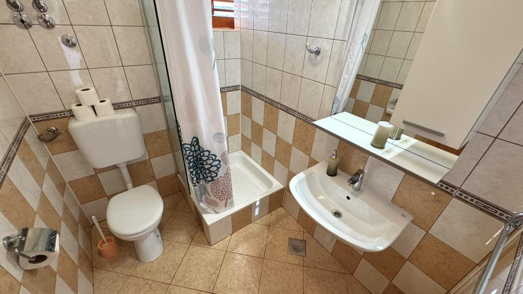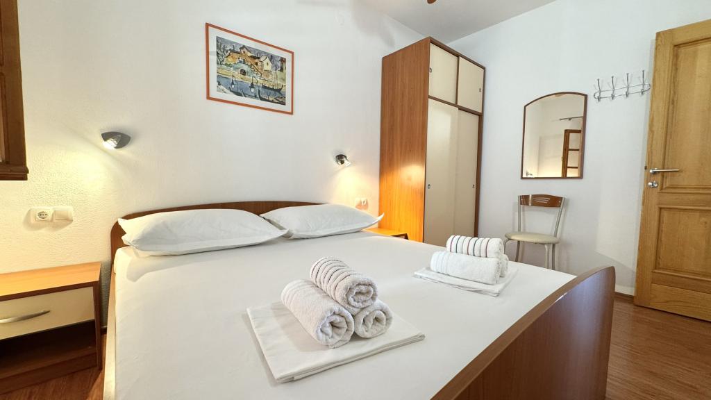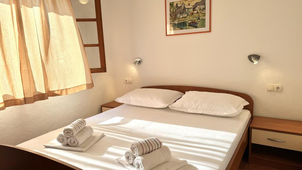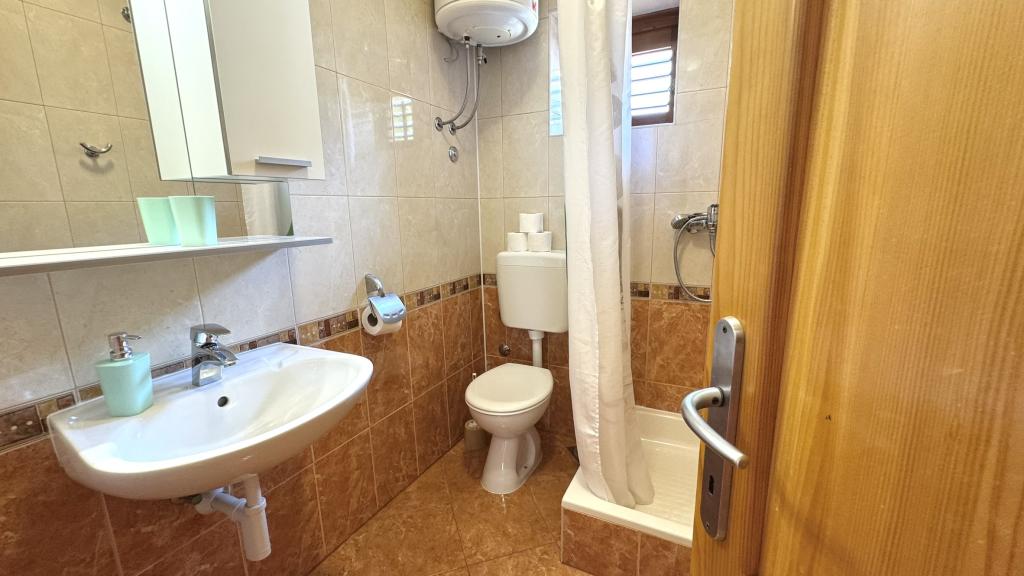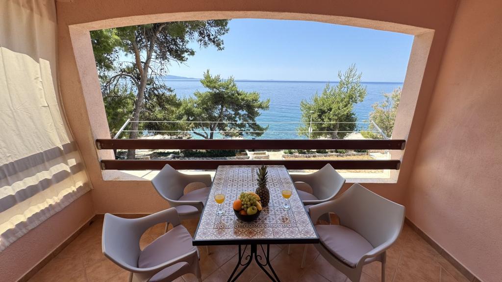 Very nice apartment, extremely clean and well maintained, snow-white bedding, a beautiful large loggia with a view of the sea, exactly as it is in the pictures. The beach is in front of the apartment and there is shade all day. Very kind hosts, definitely to recommend. Jasminka and Miro