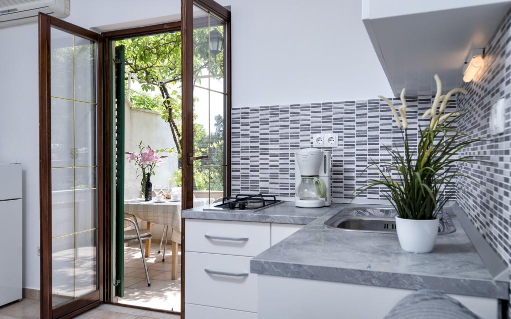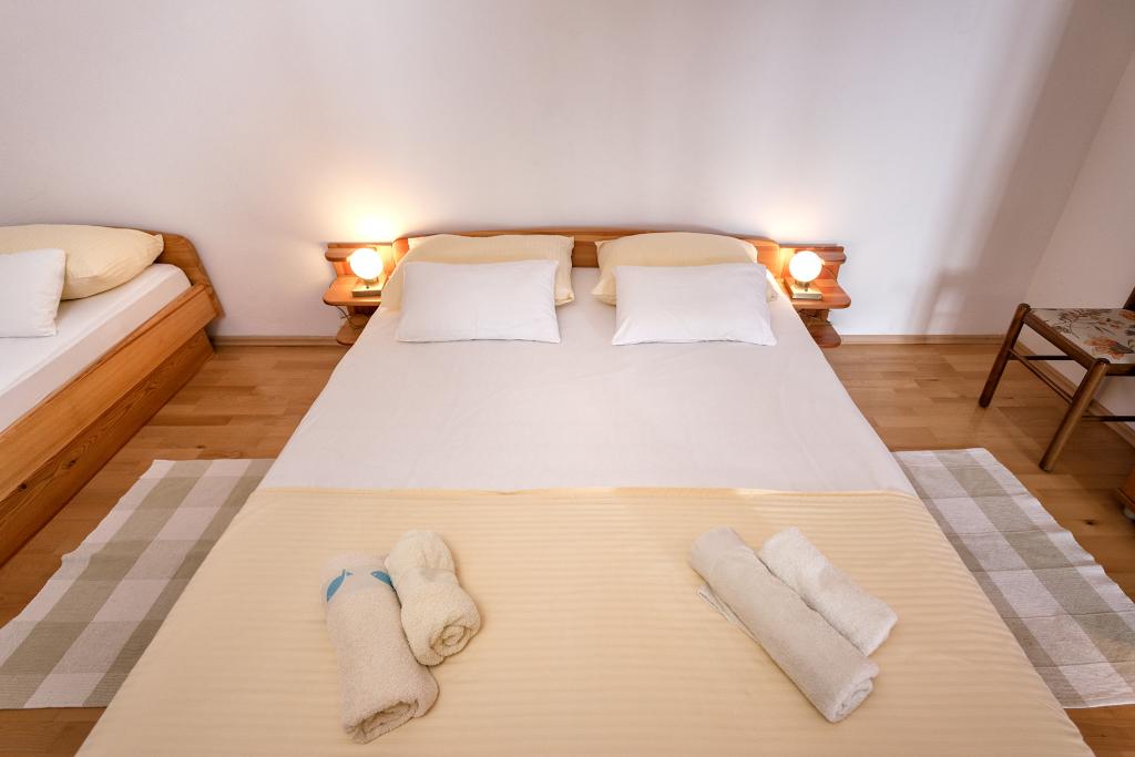 Residential tax is included in price.We have 4 apartments: PENTHOUSE is 119 m2, located on the 2nd floor, consists of 2 bedrooms (5 beds), 2 bathrooms (shower and bathtub), spacious kitchen with dishwasher, oven, dining room and large living room with sofa extendable (140 x 190) and a large terrace of 20m2 with a canopy. A1 has 90 m2, consists of 2 bedrooms (5 beds), 2 bathrooms (shower and bathtub), a spacious kitchen with dishwasher, oven, dining room and a large living room with a sofa bed (160 x 190) and a large terrace of 20m2 with a canopy. A2 is a studio apartment on the ground floor with a double bed, bathroom, kitchen and terrace. A3 is located on the 1st floor, consists of a bedroom with a double bed, a kitchen with a sofa bed and a terrace.