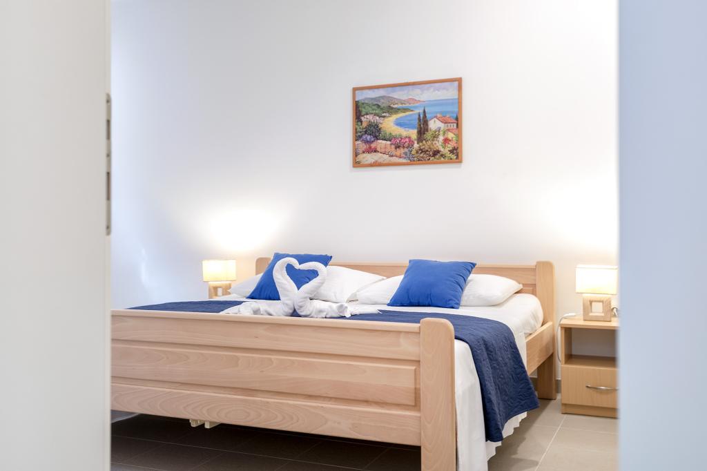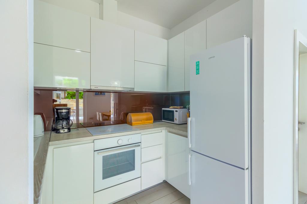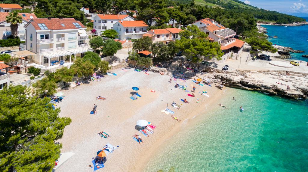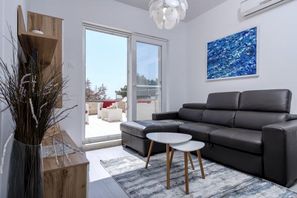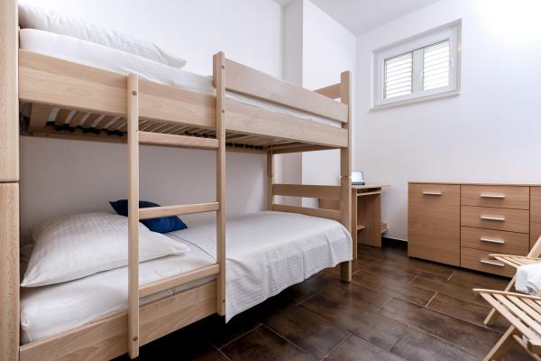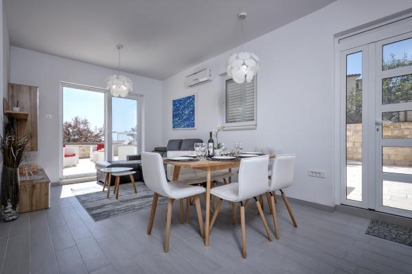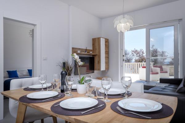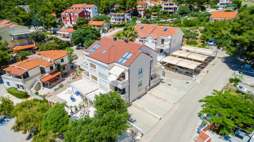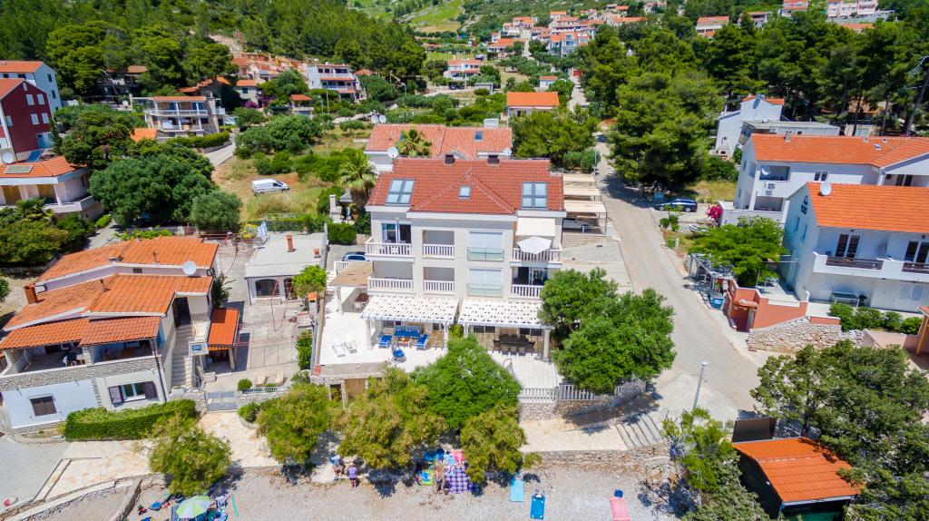 Newly built and modernly equipped apartments are located right next to the beach in the quiet town of Ivan Dolac. Apartments Unit 1 and Unit 6 are for 4 people, they consist of a bedroom with a double bed 160 x 200, a bathroom with a shower, a kitchen and a dining room, and a living room with SAT-TV and a sofa bed, and a terrace with a beautiful overlooking the beach, sea and islands. Apartments P1 and P2 are for 8 people, they consist of 3 bedrooms and a sofa bed in the living room, 2 bathrooms, a fully equipped kitchen with a dishwasher, a dining room and a dining table on the large terrace in front with a view of the sea. Apartment P2 has a larger square footage than P1, as it has one entire bedroom and bathroom on the floor below. A restaurant and cafes are only 20 meters away, and a shop 100 meters from the apartment. Although the house is located in the very center of this small tourist town, it offers complete peace and privacy because the guests are mostly families with small children who enjoy the beautiful beaches and crystal clear sea.
