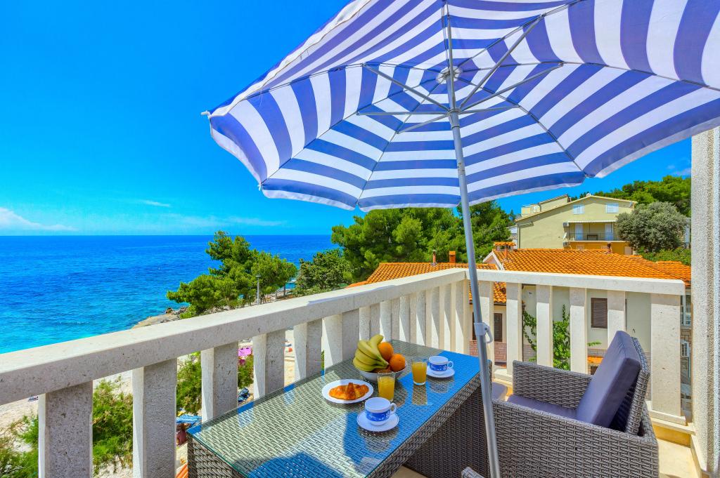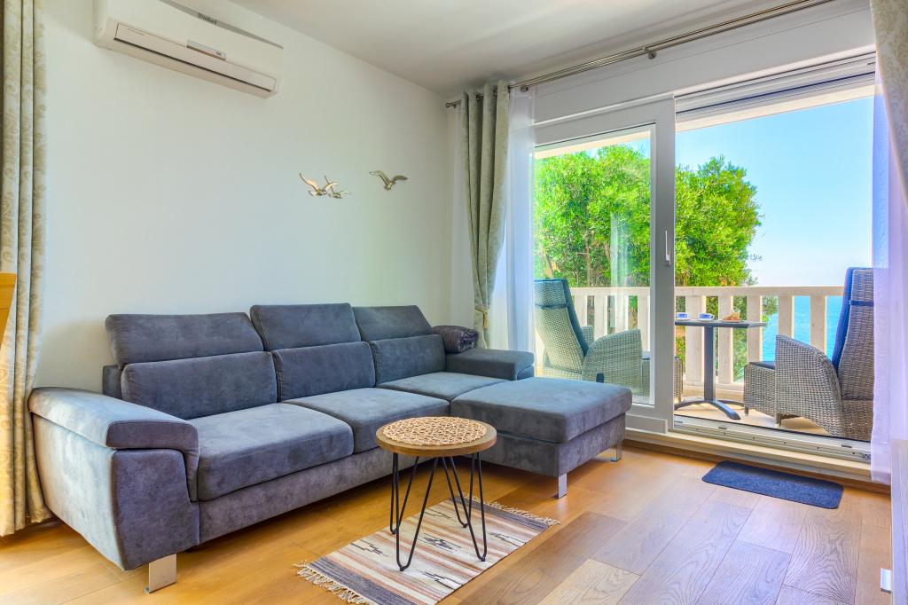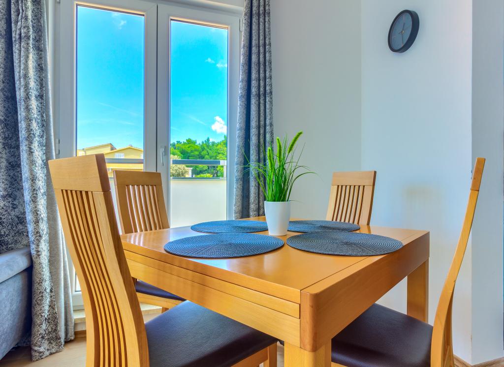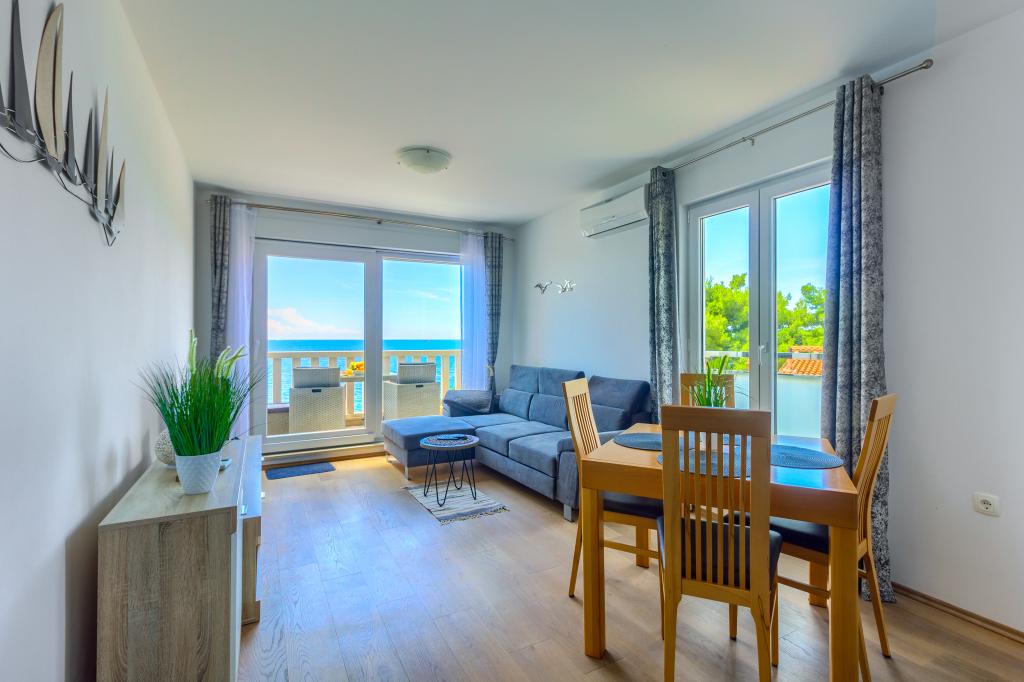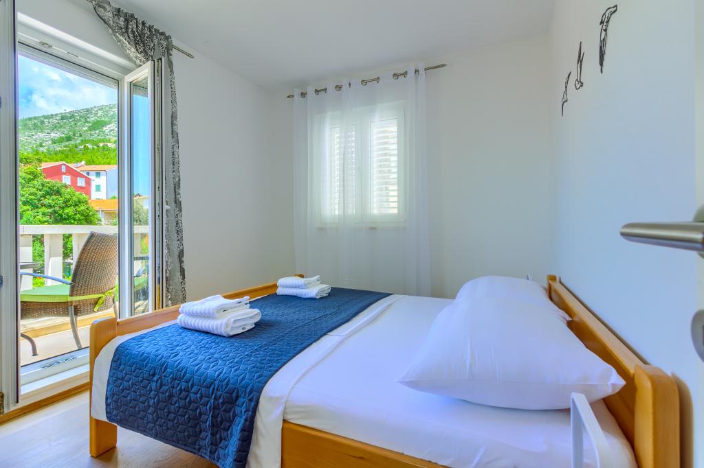 Newly built and modernly equipped apartments are located right next to the beach in the quiet town of Ivan Dolac. Apartments Unit 1 and Unit 6 are for 4 people, they consist of a bedroom with a double bed 160 x 200, a bathroom with a shower, a kitchen and a dining room, and a living room with SAT-TV and a sofa bed, and a terrace with a beautiful overlooking the beach, sea and islands. Apartments P1 and P2 are for 8 people, they consist of 3 bedrooms and a sofa bed in the living room, 2 bathrooms, a fully equipped kitchen with a dishwasher, a dining room and a dining table on the large terrace in front with a view of the sea. Apartment P2 has a larger square footage than P1, as it has one entire bedroom and bathroom on the floor below. A restaurant and cafes are only 20 meters away, and a shop 100 meters from the apartment. Although the house is located in the very center of this small tourist town, it offers complete peace and privacy because the guests are mostly families with small children who enjoy the beautiful beaches and crystal clear sea.