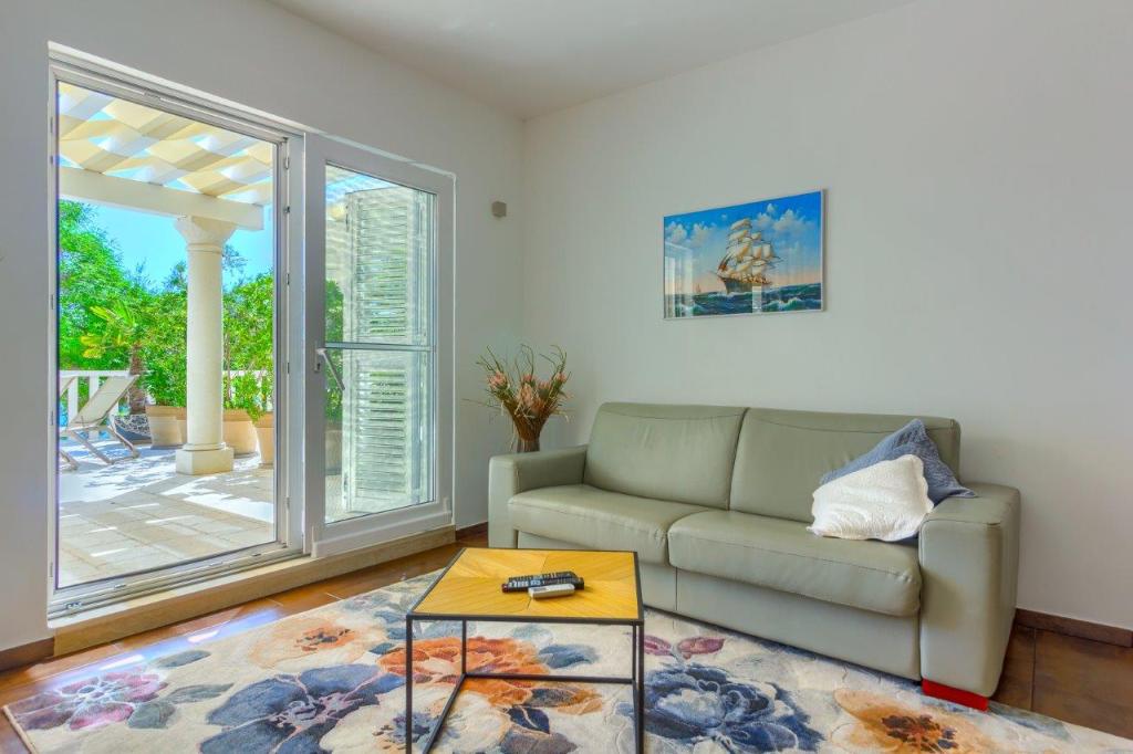 Residential tax is included in price.Additional equipment and devices included in the price: - internet, satellite TV, air conditioning, iron, fully equipped kitchen (dishwasher), washing machine is in the bathroom, private parking is provided - bed linen is changed once a week, towels twice a week if necessary and more often Possibility of speedboat trips with a skipper, and transportation to nearby islands, islets and hidden coves. Affordable price.