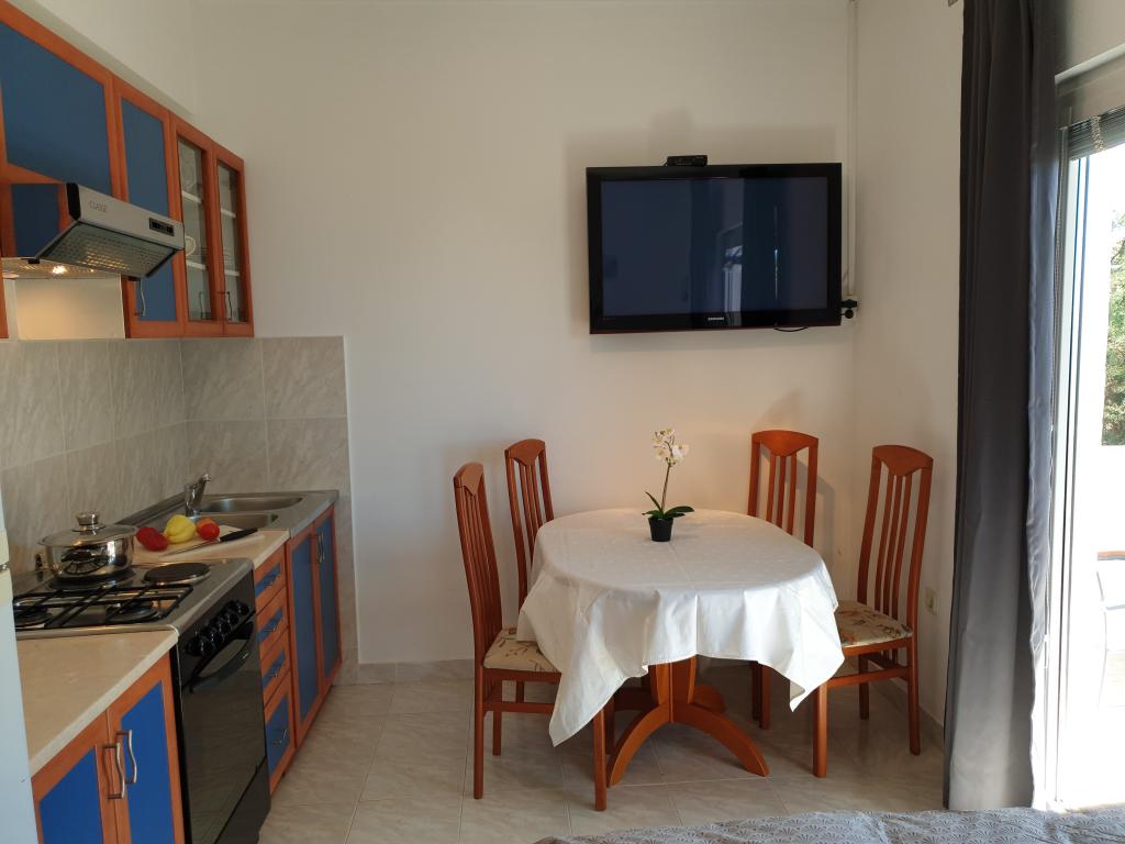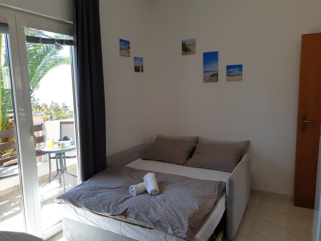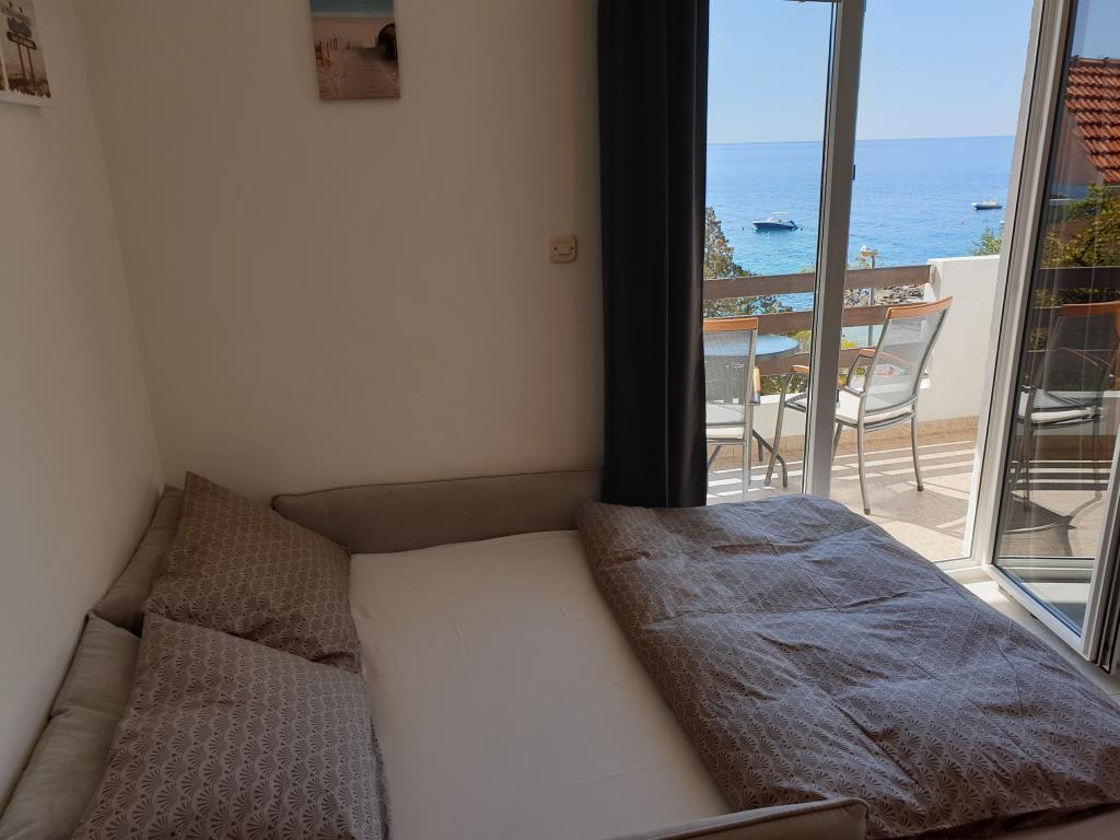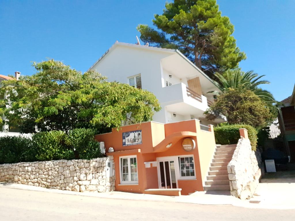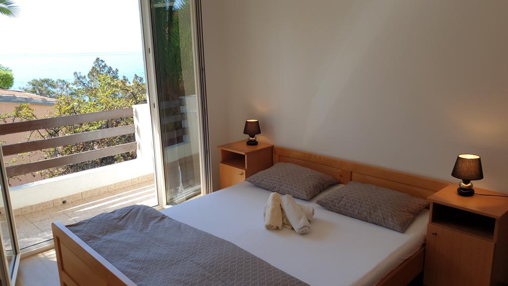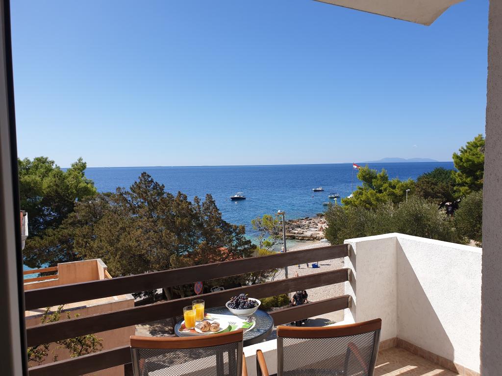 Apartments with a beautiful view of the sea are located right next to the beach in Ivan Dolac. It is also the very center of a quiet tourist town that is ideal for families with children because of the proximity to the beach, only 10 meters from the house, bakery 40 m, shop 100 m, cafe and restaurant 20 m. In the basement of the house there is our souvenir shop and wine shop. - Small apartment A3 consists of a kitchen with a dining table and a sofa bed, a bedroom with a double bed, a bathroom with a shower, an entrance hall and a terrace. A beautiful view of the sea and the beach can be seen from almost the entire apartment. The apartment is located on the 1st floor of the house, as is the apartment. A4. - Large Apartment A4 consists of a kitchen with a dining table and a sofa bed, two bedrooms with a double bed, a bathroom with a shower, an entrance hall and a terrace. There is a view of the sea from the kitchen, one bedroom and the terrace.