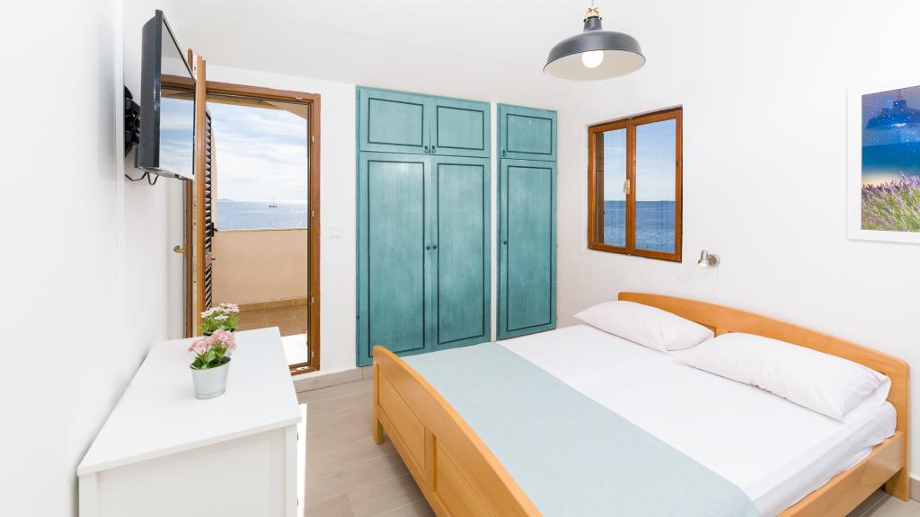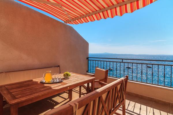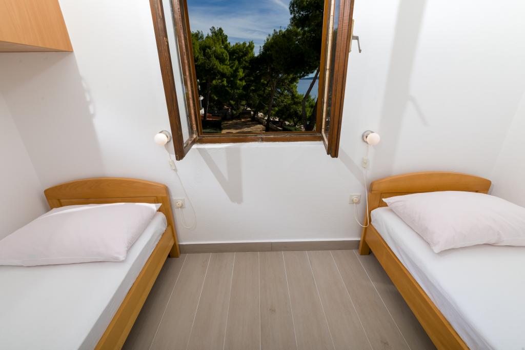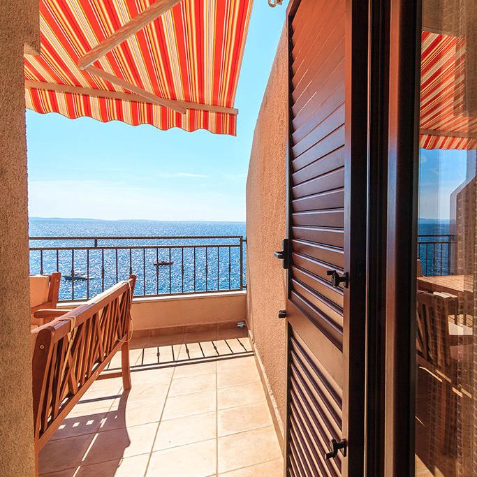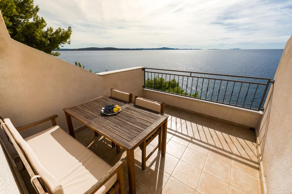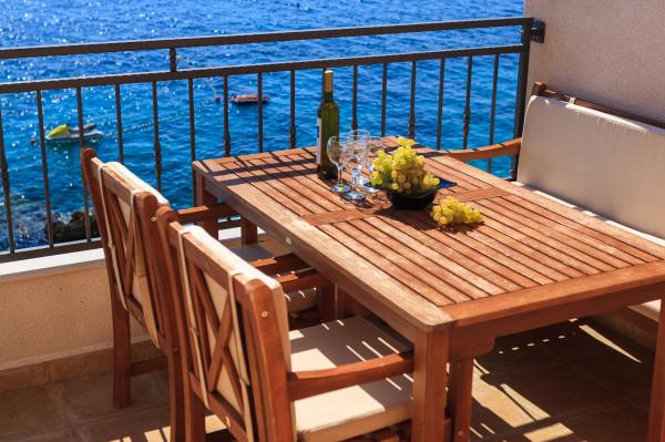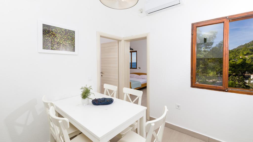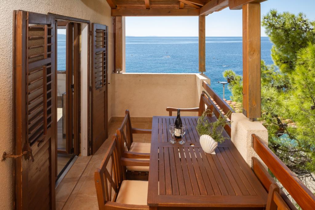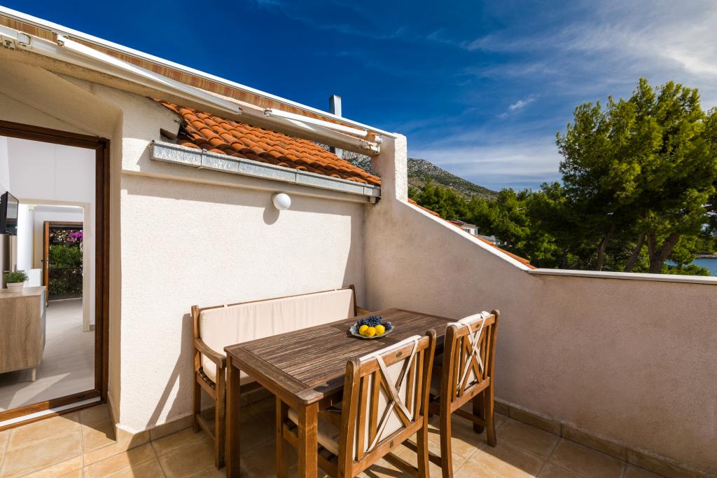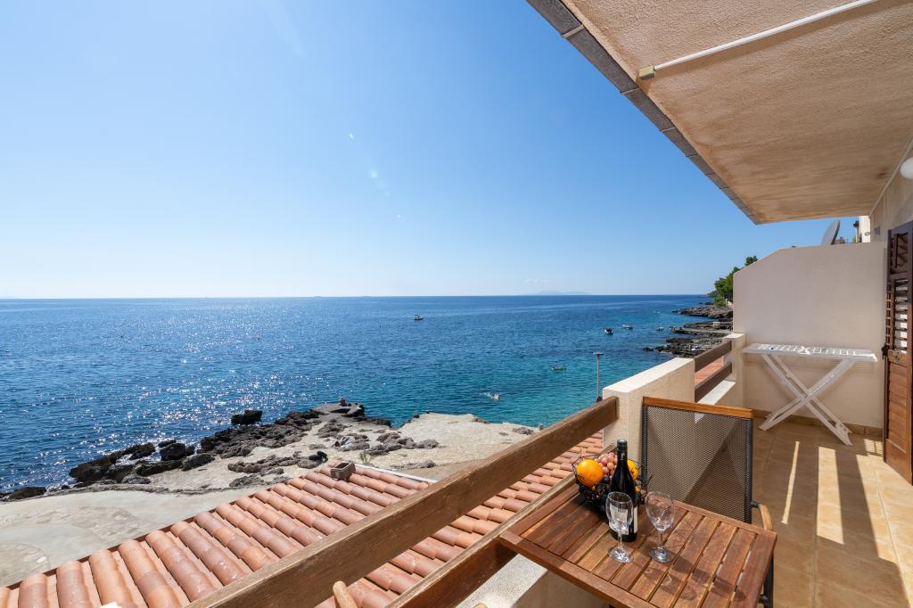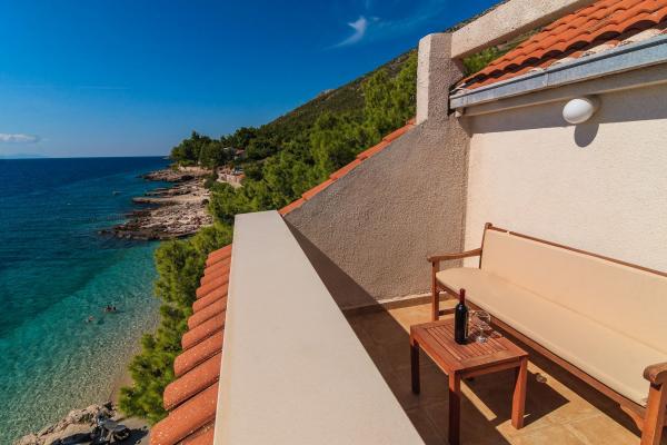 Apartments Slavinka are situated in the center of Ivan Dolac, small sunny village on the southern side of the island of Hvar. They are located in the first row by the sea and distant less than 10 meters from the beautiful pebble beach. We have in offer 8 apartments of different dimensions, suitable for various types of tourist groups. Each apartment has an amazing, open view on the sea and the islands of Scedro, Korcula, Susac, Lukovci, Vis and Bisevo. The apartments are situated on the first floor and attic of the house. The apartments on the attic floor have recently renovated and widened balconies (each has 12m2) with brand new dinning seats. On the groundfloor there is a peaceful restauran and café, where you can enjoy your morning coffee, refreshing drink after swimming or tasteful meals based on domestic and international kitchen, having a spectacular sea view at the same time.