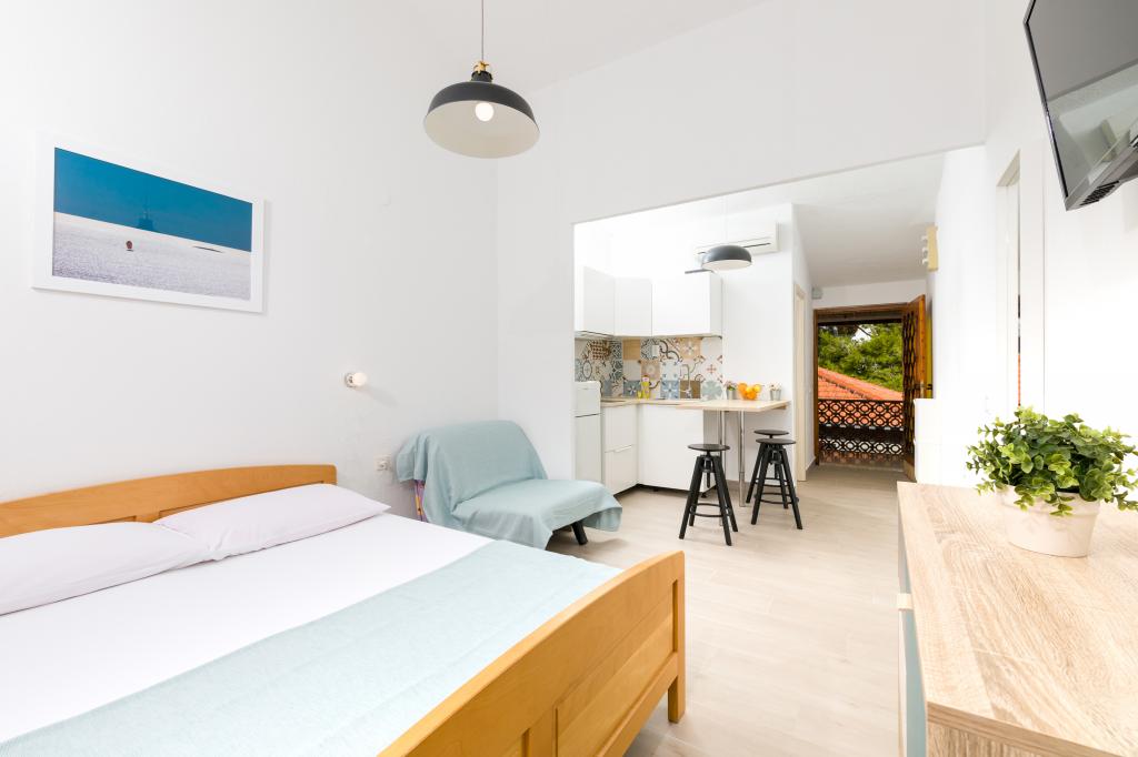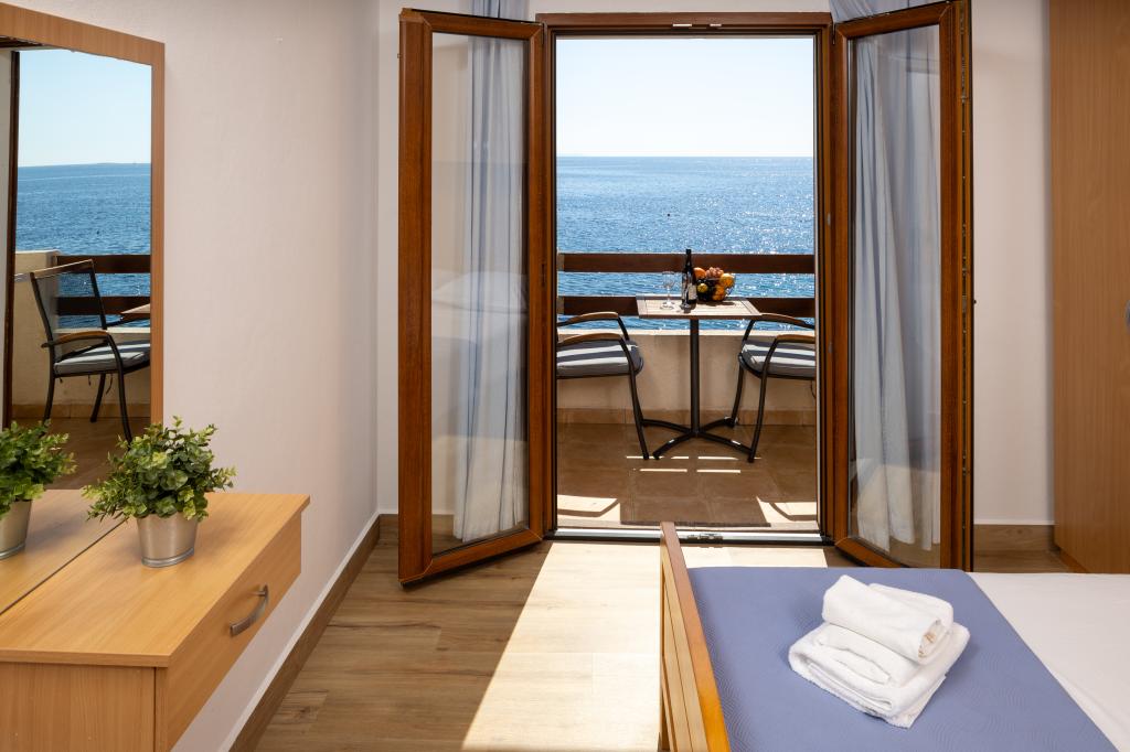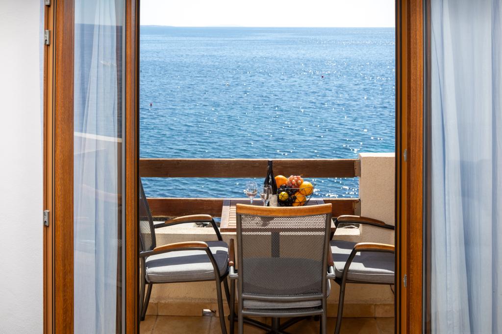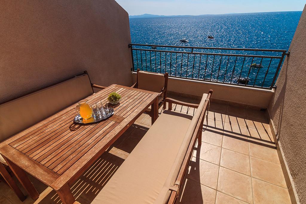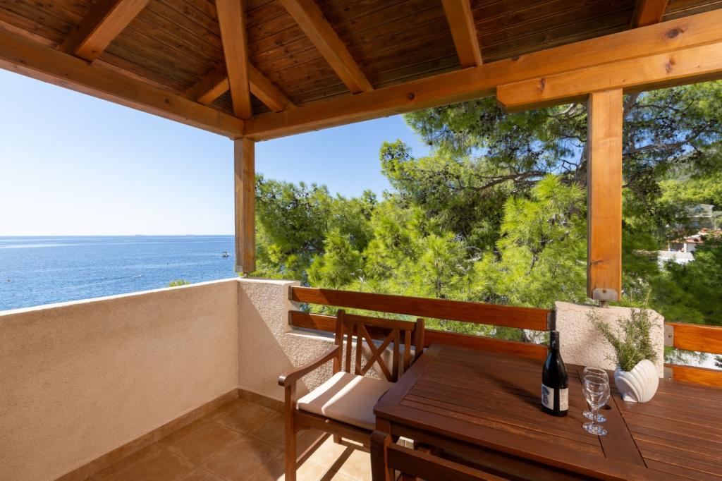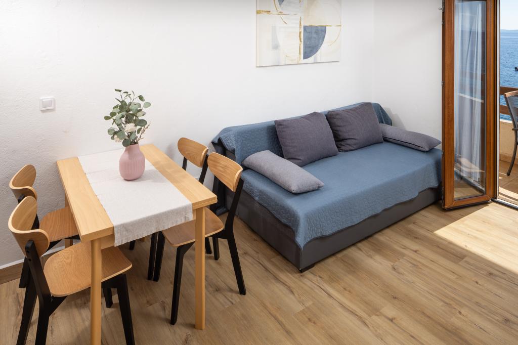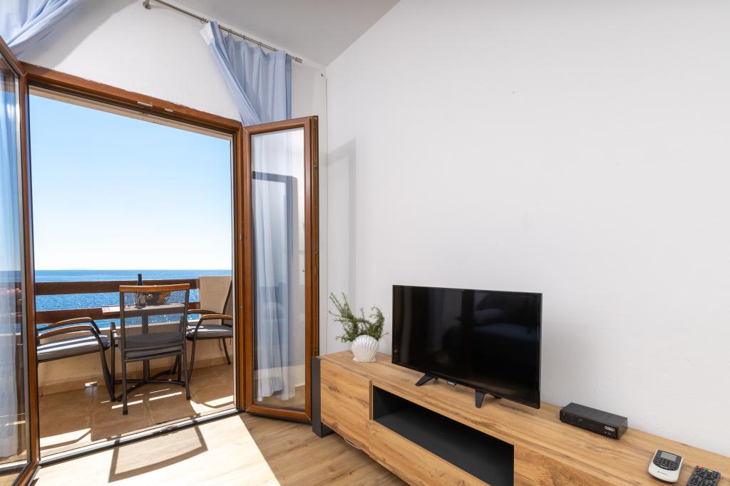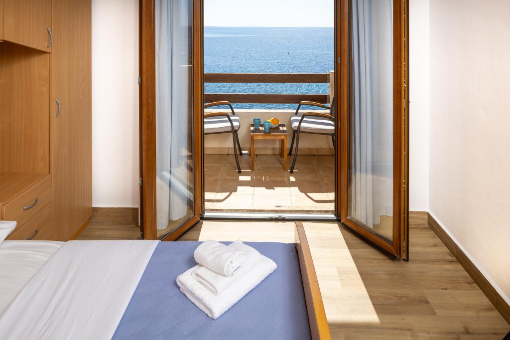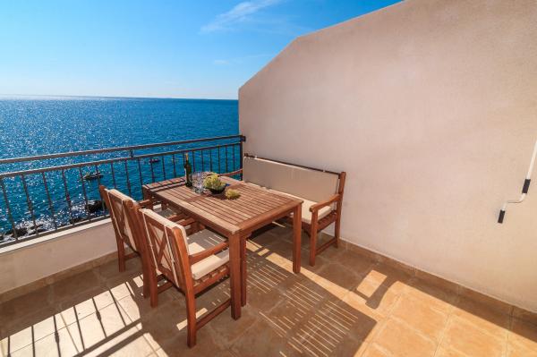 Apartments Slavinka are situated in the center of Ivan Dolac, small sunny village on the southern side of the island of Hvar. They are located in the first row by the sea and distant less than 10 meters from the beautiful pebble beach. We have in offer 8 apartments of different dimensions, suitable for various types of tourist groups. Each apartment has an amazing, open view on the sea and the islands of Scedro, Korcula, Susac, Lukovci, Vis and Bisevo. The apartments are situated on the first floor and attic of the house. The apartments on the attic floor have recently renovated and widened balconies (each has 12m2) with brand new dinning seats. On the groundfloor there is a peaceful restauran and café, where you can enjoy your morning coffee, refreshing drink after swimming or tasteful meals based on domestic and international kitchen, having a spectacular sea view at the same time.