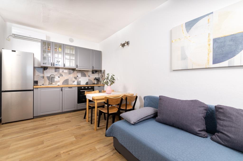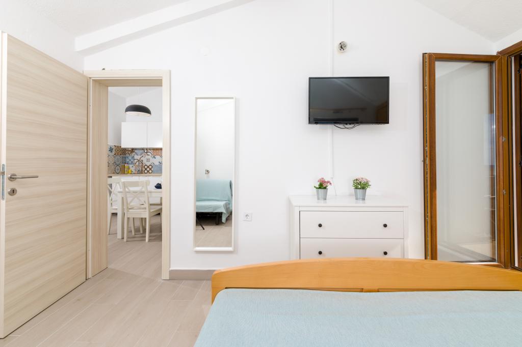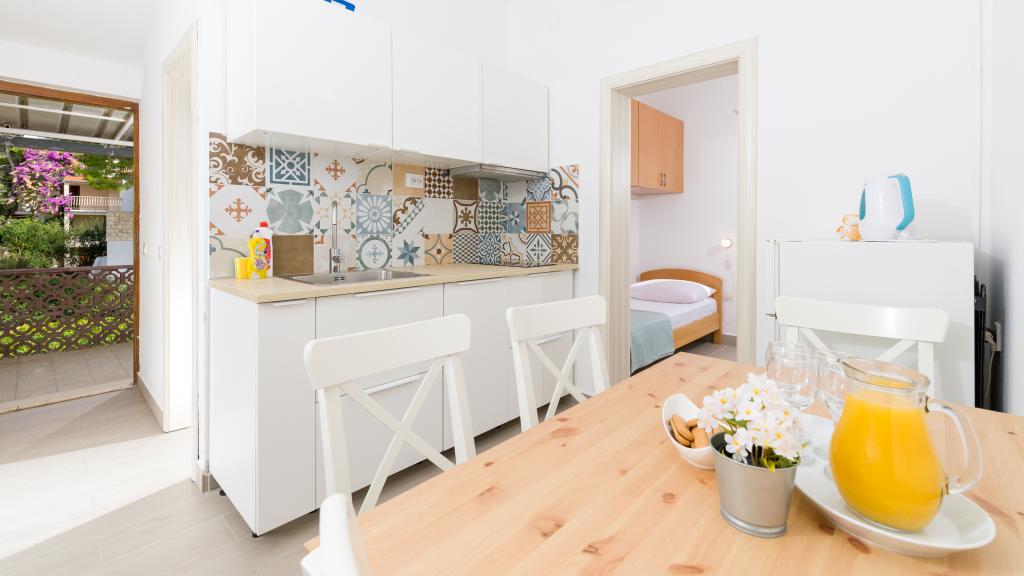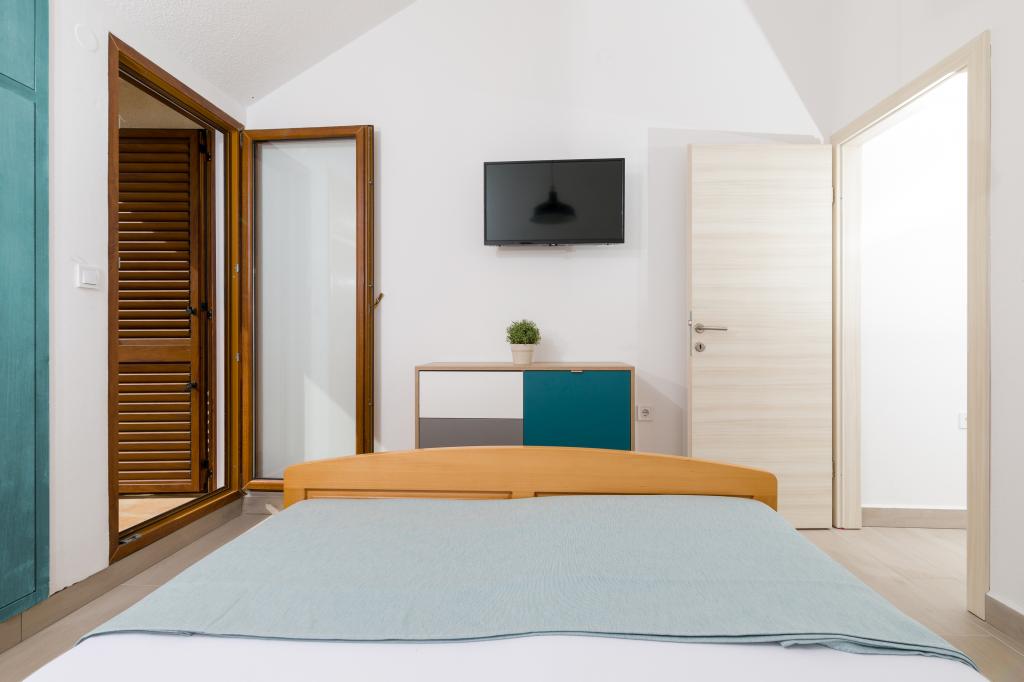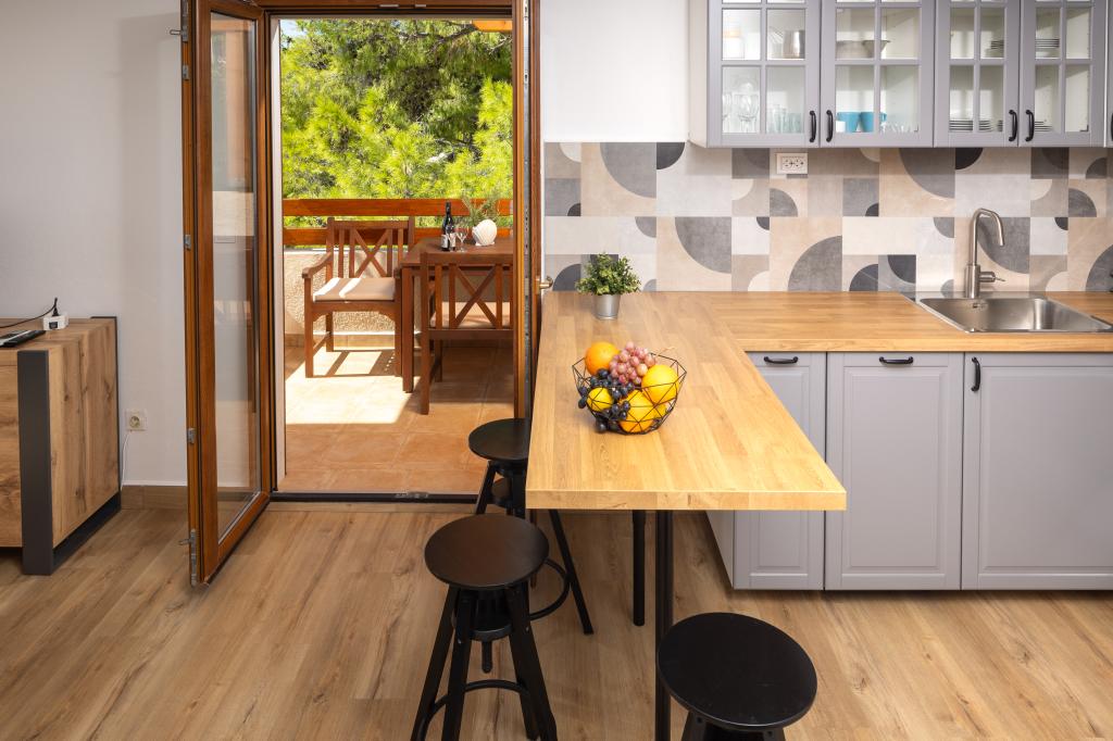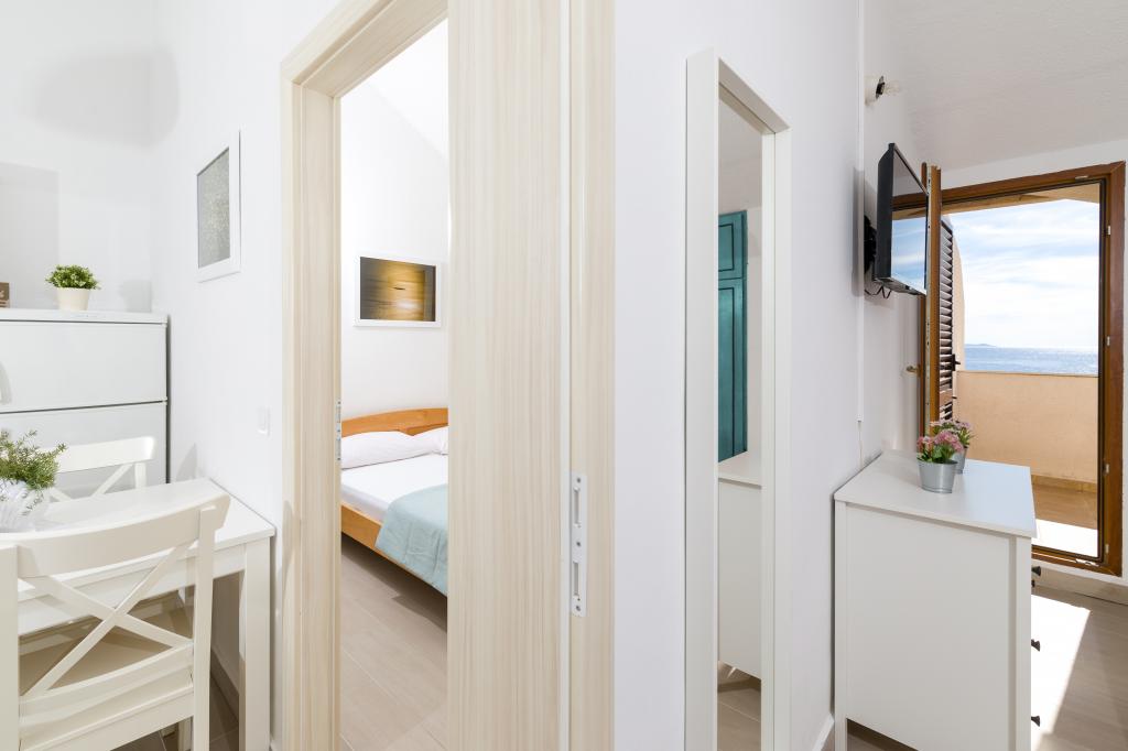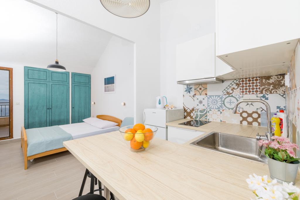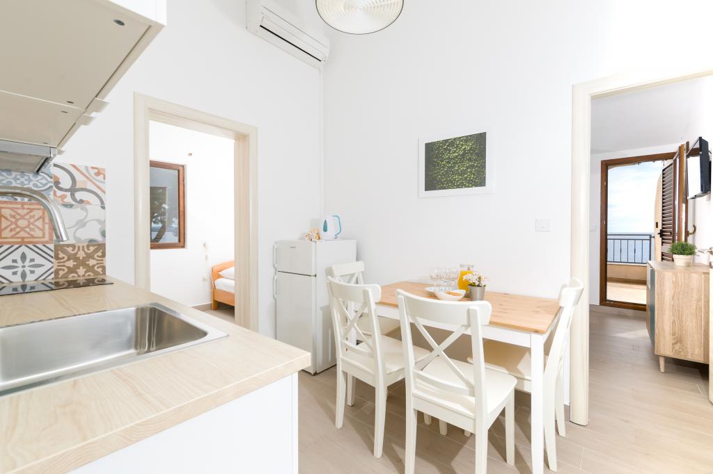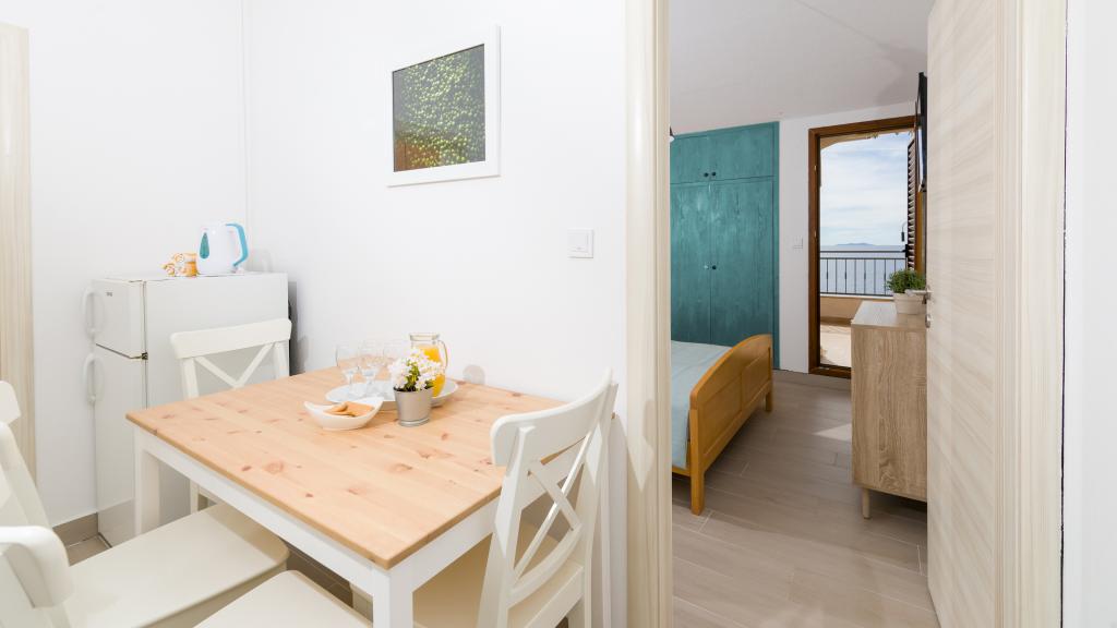 Apartments Slavinka are situated in the center of Ivan Dolac, small sunny village on the southern side of the island of Hvar. They are located in the first row by the sea and distant less than 10 meters from the beautiful pebble beach. We have in offer 8 apartments of different dimensions, suitable for various types of tourist groups. Each apartment has an amazing, open view on the sea and the islands of Scedro, Korcula, Susac, Lukovci, Vis and Bisevo. The apartments are situated on the first floor and attic of the house. The apartments on the attic floor have recently renovated and widened balconies (each has 12m2) with brand new dinning seats. On the groundfloor there is a peaceful restauran and café, where you can enjoy your morning coffee, refreshing drink after swimming or tasteful meals based on domestic and international kitchen, having a spectacular sea view at the same time.